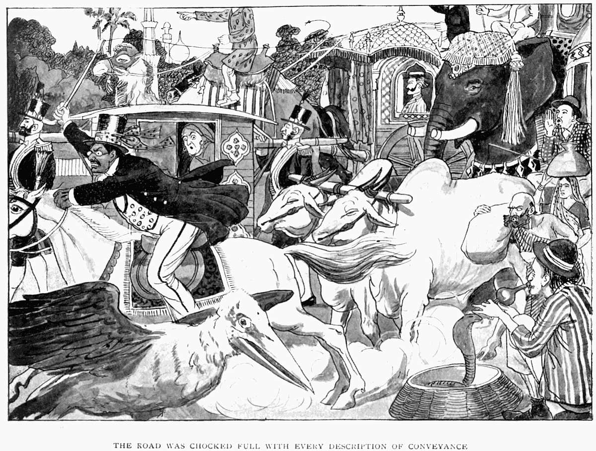 It is true that I wrote "every description of conveyance"—but how was I, being "Davus non Œdipus," to anticipate that Mr Pahtridhji would interpret the phrase as including such nondescript vehicles as a hansom cab propelled by a bullock, and a kind of palkee borne by two members of the flunkey caste?