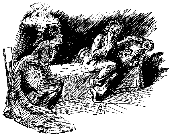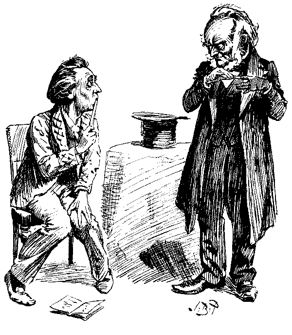 [Looks from one to the other, gloomily.] H'm!