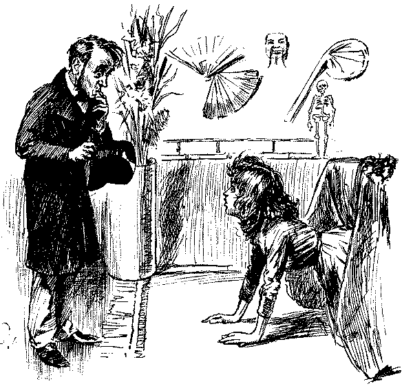 I merely called for the purpose of informing you that I consider you an artful and designing person, but that, on the whole, considering your birth and moral antecedents, you know—[nods at her]—it is not surprising. [Rebecca walks about wringing her hands.] Why, what is the matter? Did you really not know that you had no right to your father's name? I'd no idea you would mind my mentioning such a trifle!