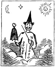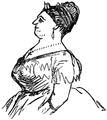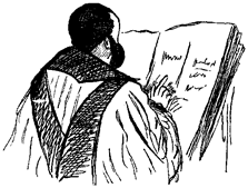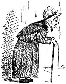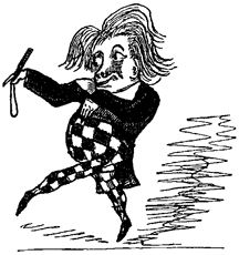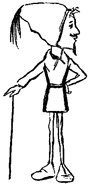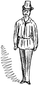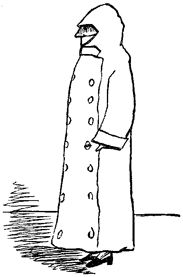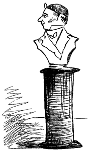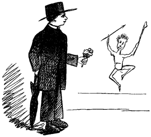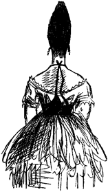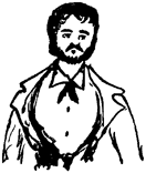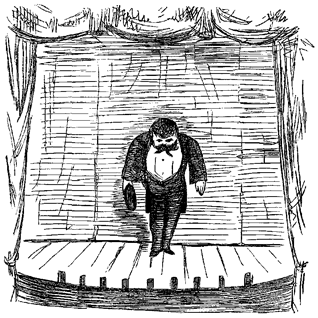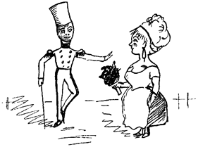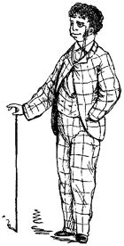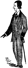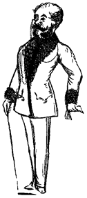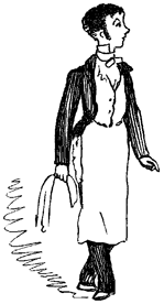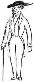 At night he keeps his word by coming down dressed like the proverbial methodist Mawworm. An enormous white tie, doubled. His hair combed sadly straight. A high black waistcoat, his trousers shortened, white stockings and shoes.