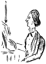 Meditations by myself when in a costume something between a naval officer, a Spanish grandee, and Richard the Third.—What can be the fun of dressing up? It is so much more comfortable 215in your own things. And a charade's a bore. At least, it bores the audience, I'm sure. And if there are people acting who say all sorts of nonsense, and do anything, there's no art in it. . . Nine o'clock. I wish he'd brought a longer candle, and would be quicker in dressing. He's gone to his own room, perhaps, to dress, or is arranging the performance. . . . . . . . It's a melancholy thing to be in these clothes. I wonder if they were made for some great actor, or whether they were once the real thing? No, that's impossible. . . . . I wish Miss Medford was going to take a part—perhaps she is. . . . unless that's her touch on the piano. The overture probably. . . . . It's so cold in here, I must walk about. . . . . The candle is burning down.