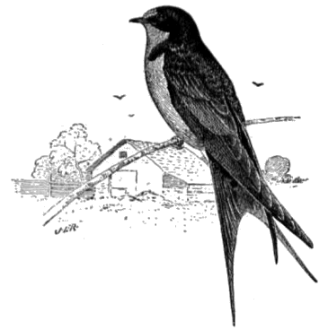 Their habits are too familiar to require any extended description. Their industry and tirelessness are wonderful, and during the day it is rare to see swallows at rest except just before their departure for the South, when they assemble upon telegraph wires or upon the roofs of buildings, apparently making plans for the journey.