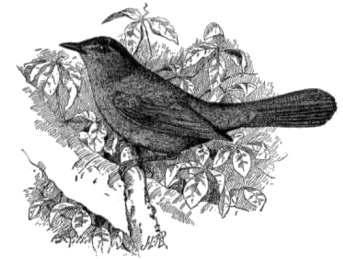 The catbird always attracts attention, and the intruder upon its haunts soon understands that he is not welcome. There is no mistaking the meaning of the sneering voice with which he is saluted, and there is little doubt that this gave rise to the popular prejudice against the bird; but the feeling has been increased by the fact that the species is sometimes a serious annoyance to fruit growers. All such reports, however, seem to come from the prairie country of the West. In New England, according to the writer's experience the catbird is seldom seen about gardens or orchards; the reason may possibly be found in the fact that on the prairies fruit-bearing shrubs which afford so large a part of this bird's food are conspicuously absent. With the settlement of this region comes an extensive planting of orchards, vineyards, and small fruit gardens, which furnish shelter and nesting sites for the catbird, as well as for other species, with a consequent large increase in their numbers, but without providing the native fruits upon which they have been accustomed to feed. Under these circumstances, what is more natural than for the birds to turn to cultivated fruits for their « 34 » supplies? The remedy is obvious; cultivated fruits can be protected by the simple expedient of planting wild species or others which are preferred by the birds. Some experiments with catbirds in captivity showed that the Russian mulberry was preferred to any cultivated fruit that could be offered.