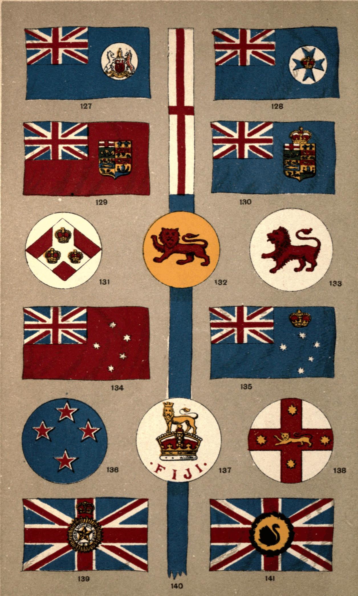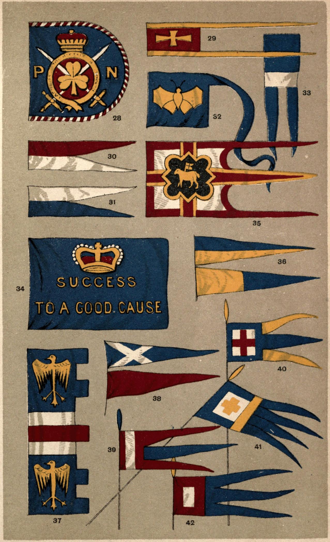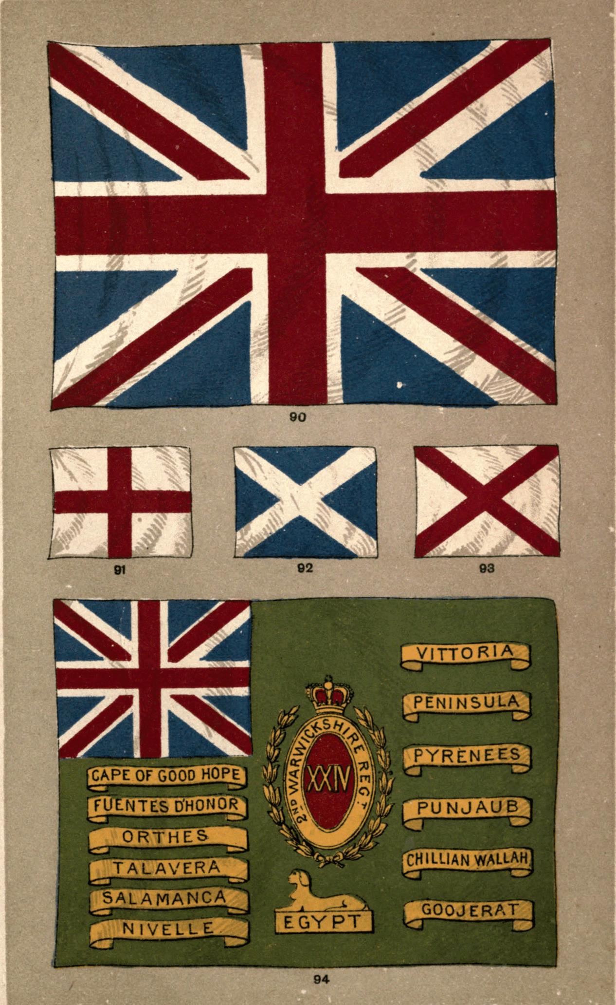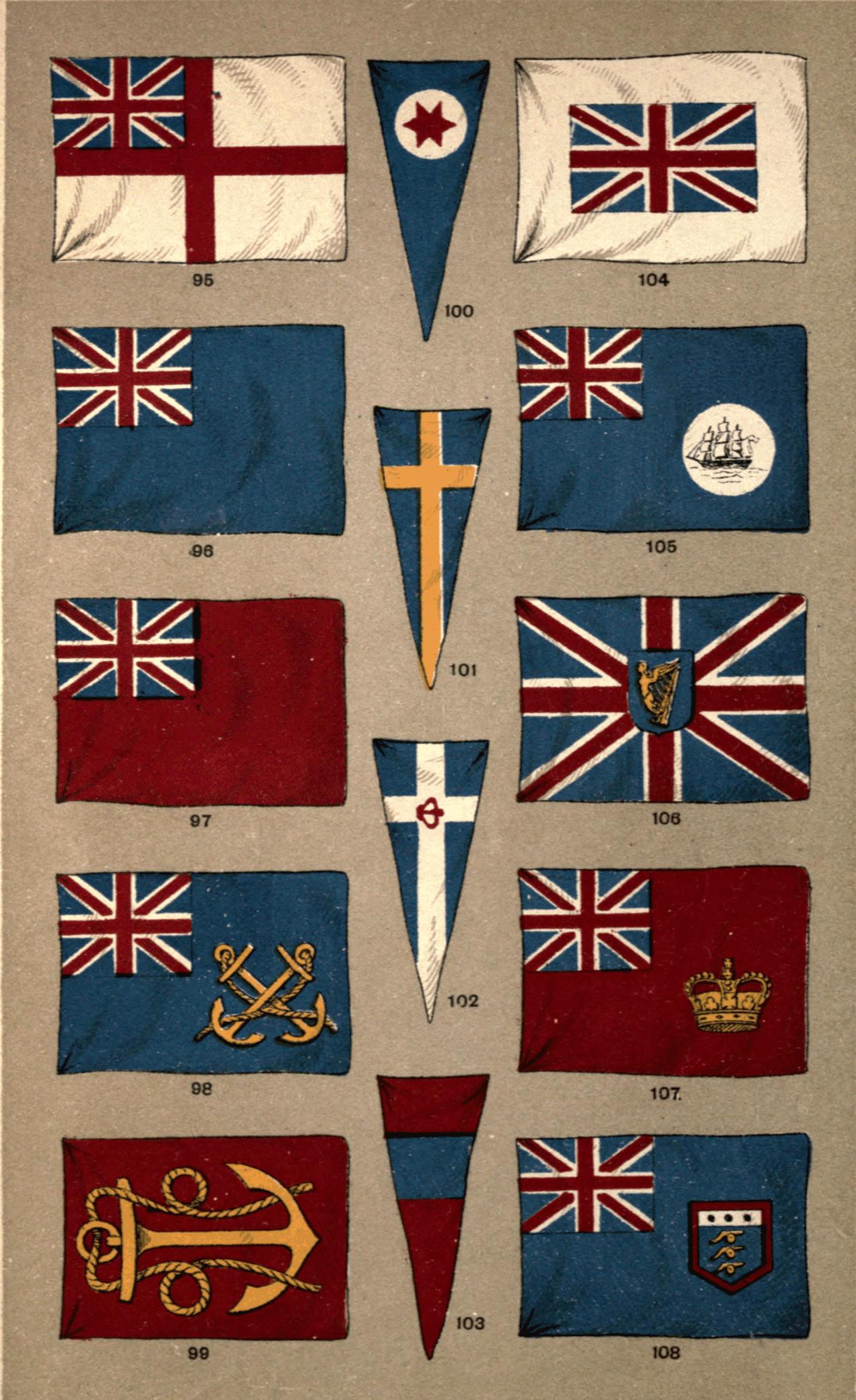 | Army Flags—the Queen's Colour—the Regimental Colour—the Honours and Devices—the Flag of the 24th Regiment—Facings—Flag of the King's Own Borderers—What the Flag Symbolises—Colours of the Guards—the Assaye Flag—Cavalry Flags—Presentation of Colours—Chelsea College Chapel—Flags of the Buffs in Canterbury Cathedral—Flags of the Scottish Regiments in St. Giles's Cathedral—Burning of Rebel Flags by the Hangman—Special Flags for various Official Personages—Special Flags for different Government Departments—the Lord High Admiral—the Mail Flag—White Ensign of the Royal Yacht Squadron—Yacht Ensigns and Burgees—House or Company Flags—How to express Colours with Lines—the Allan Tricolor—Port Flags—the British Empire—the Colonial Blue Ensign and Pendant—the Colonial Defence Act—Colonial Mercantile Flag—Admiralty Warrant—Flag of the Governor of a Colony—the Green Garland—the Arms of the Dominion of Canada—Badges of the various Colonies—Daniel Webster on the Might of England—Bacon on the Command of the Ocean | 61 |