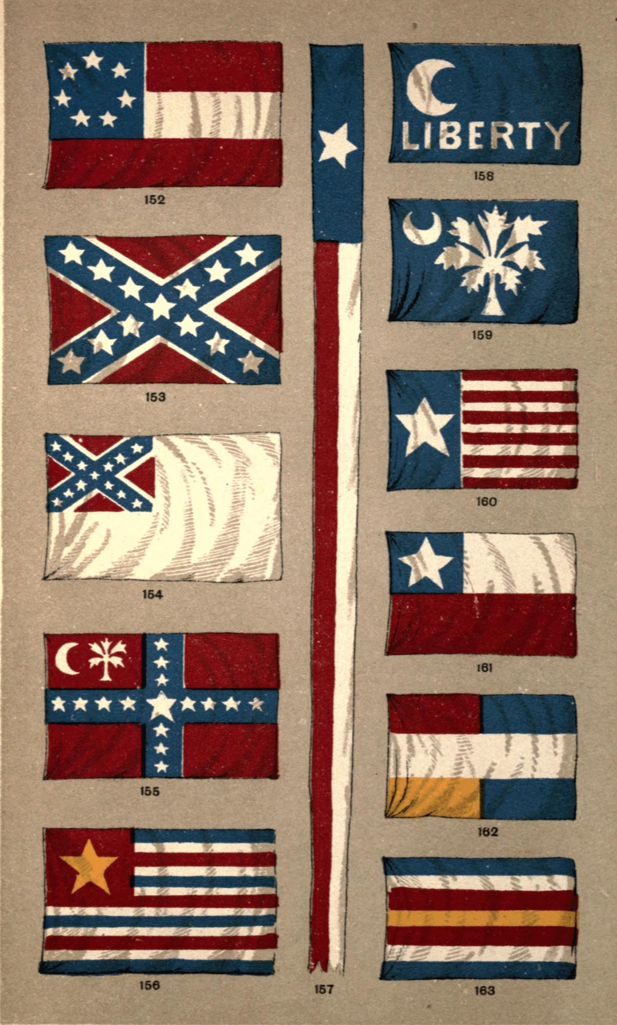 [58] In September, 1775, Moultrie, the heroic defender of the fort which still bears his name, devised this the first flag of the State of South Carolina, the uniform of the South Carolina men being blue, and some of the regiments having a silver crescent in their caps; but why they had the silver crescent as a badge no record seems to inform us.