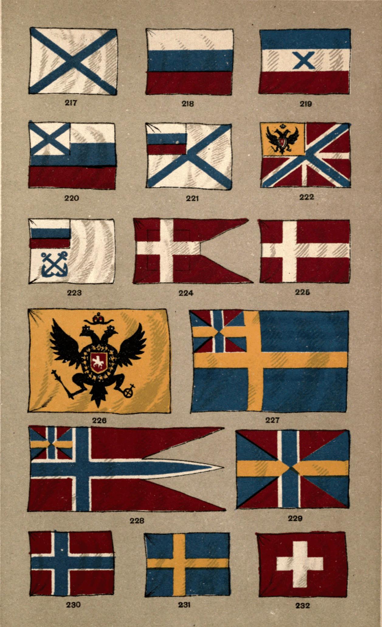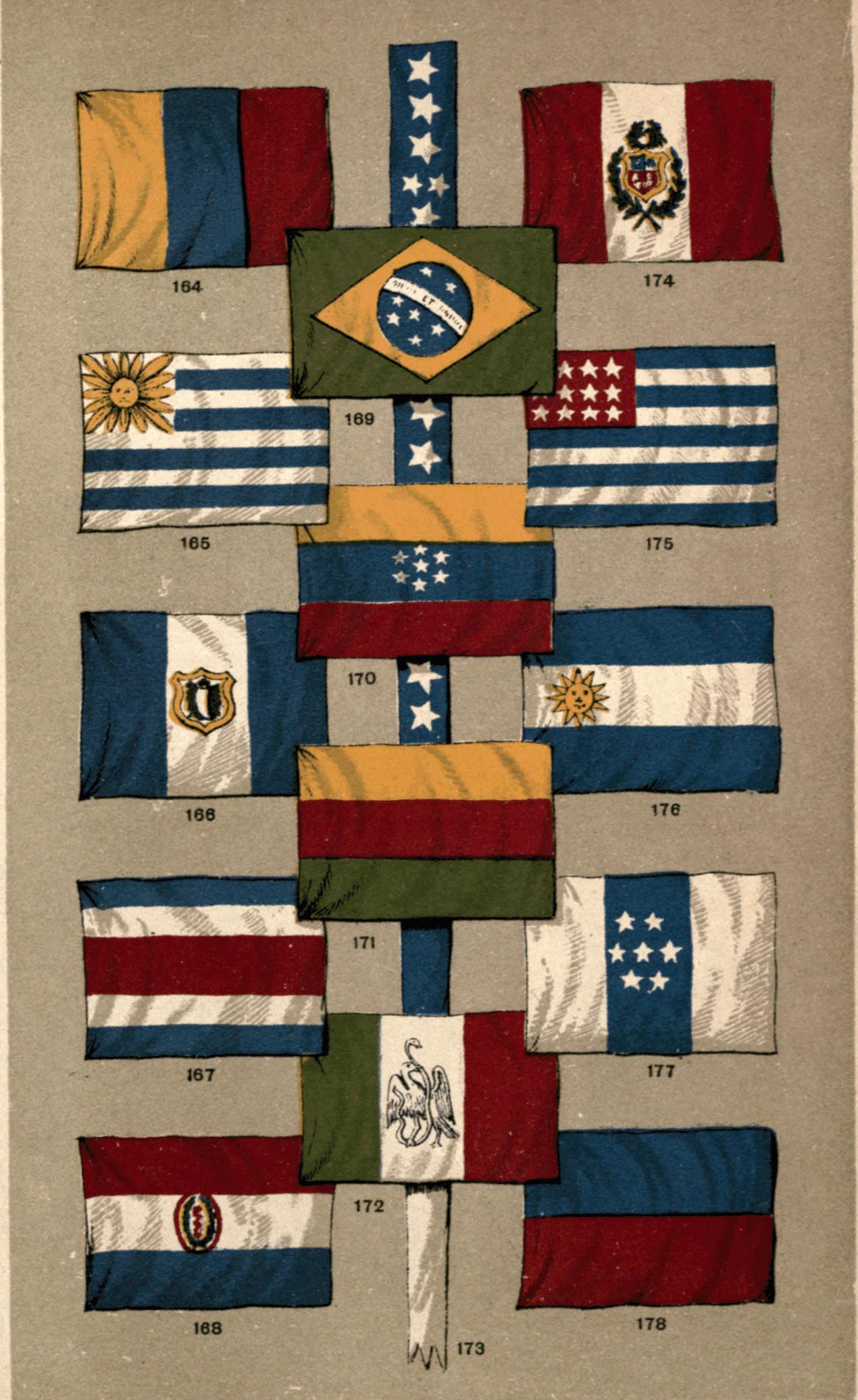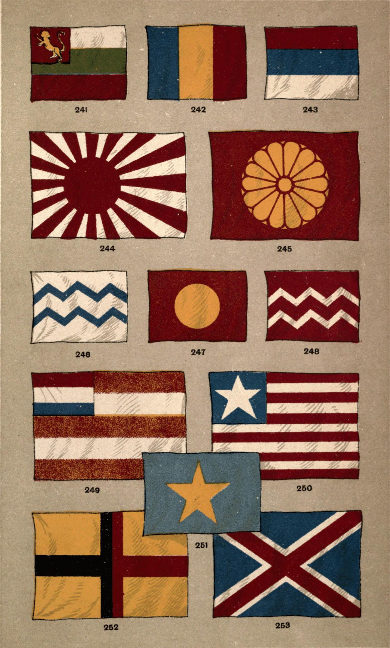 | The Flag of Columbus—Early Settlements in North America—the Birth of the United States—Early Revolutionary and State Flags—the Pine-tree Flag—the Rattle-snake Flag—the Stars and Stripes—Early Variations of it—the Arms of Washington—Entry of New States into the Union—the Eagle—the Flag of the President—Secession of the Southern States—State Flags again—the Stars and Bars—the Southern Cross—the Birth of the German Empire—the Influence of War Songs—Flags of the Empire—Flags of the smaller German States—the Austro-Hungary Monarchy—the Flags of Russia—the Crosses of St. Andrew and St. George again—the Flags of France—St. Martin—the Oriflamme—the Fleurs-de-lys—Their Origin—the White Cross—the White Flag of the Bourbons—the Tricolor—the Red {v} Flag—the Flags of Spain—of Portugal—the Consummation of Italian Unity—the Arms of Savoy—the Flags of Italy—of the Temporal Power of the Papacy—the Flag of Denmark—its Celestial Origin—the Flags of Norway and Sweden—of Switzerland—Cantonal Colours—the Geneva Convention—the Flags of Holland—of Belgium—of Greece—the Crescent of Turkey—the Tughra—the Flags of Roumania, Servia, and Bulgaria—Flags of Mexico, and of the States of Southern and Central America—of Japan—the Rising Sun—the Chrysanthemum—the Flags of China, Siam and Corea—of Sarawak—of the Orange Free State, Liberia, Congo State, and the Transvaal Republic | 86 |
