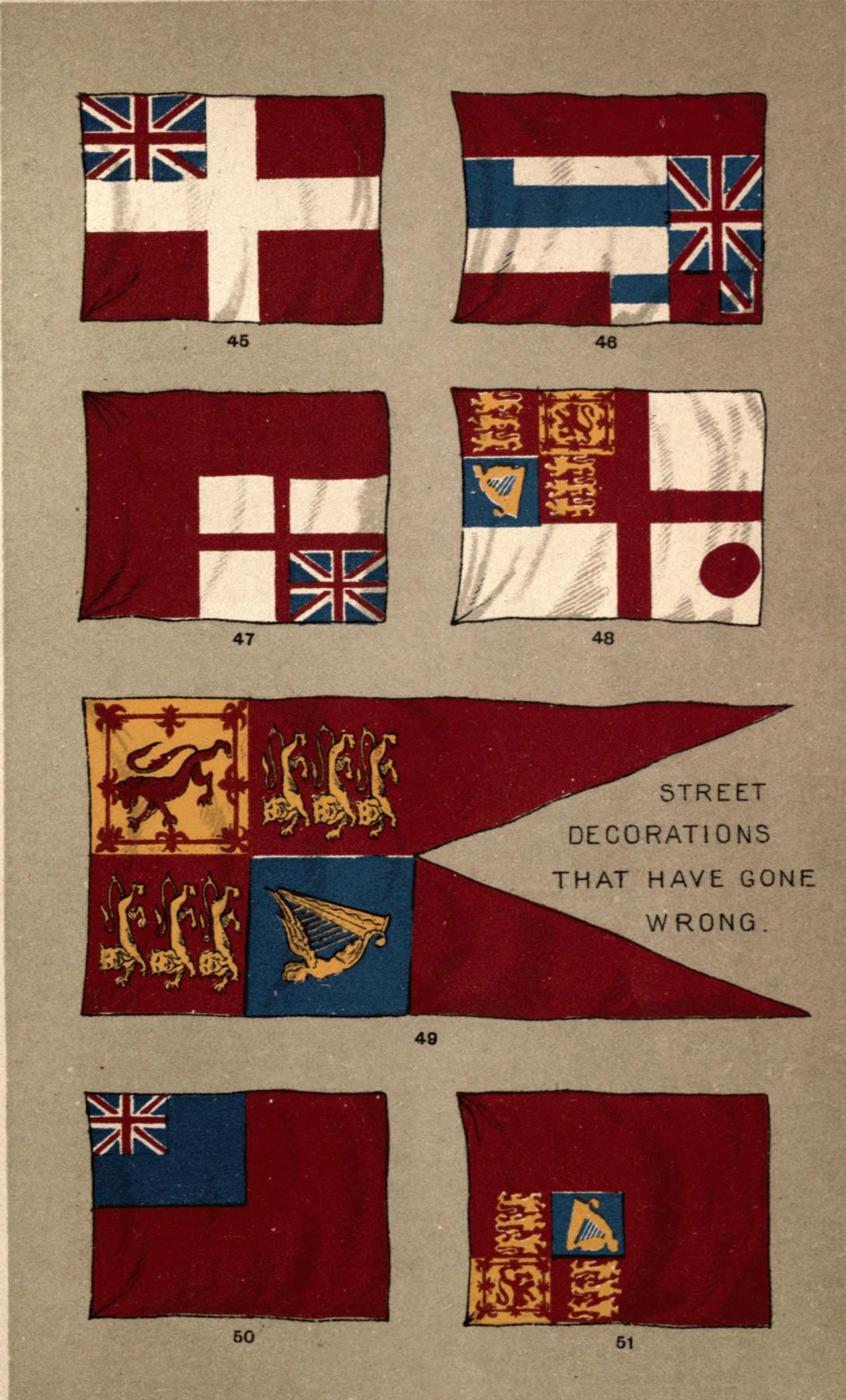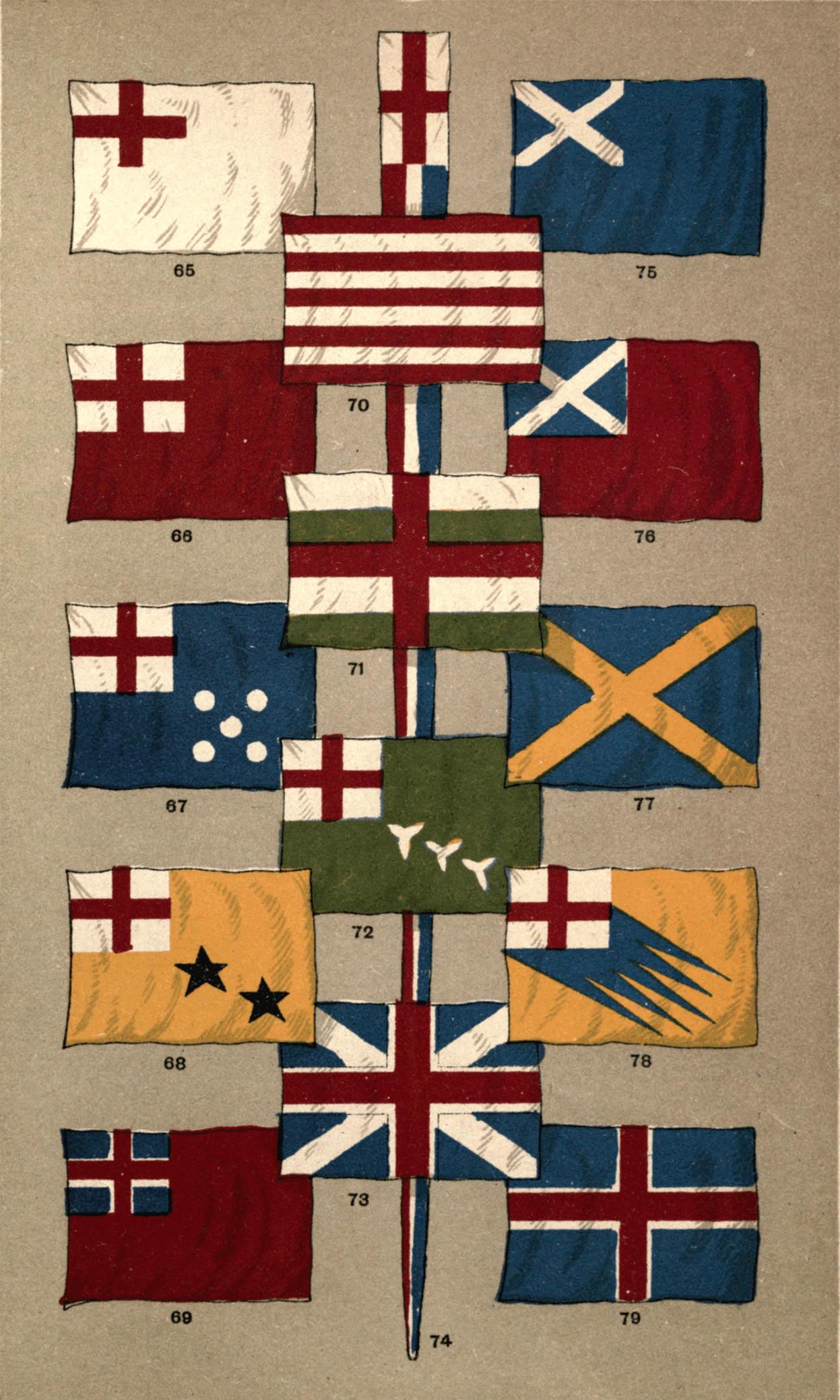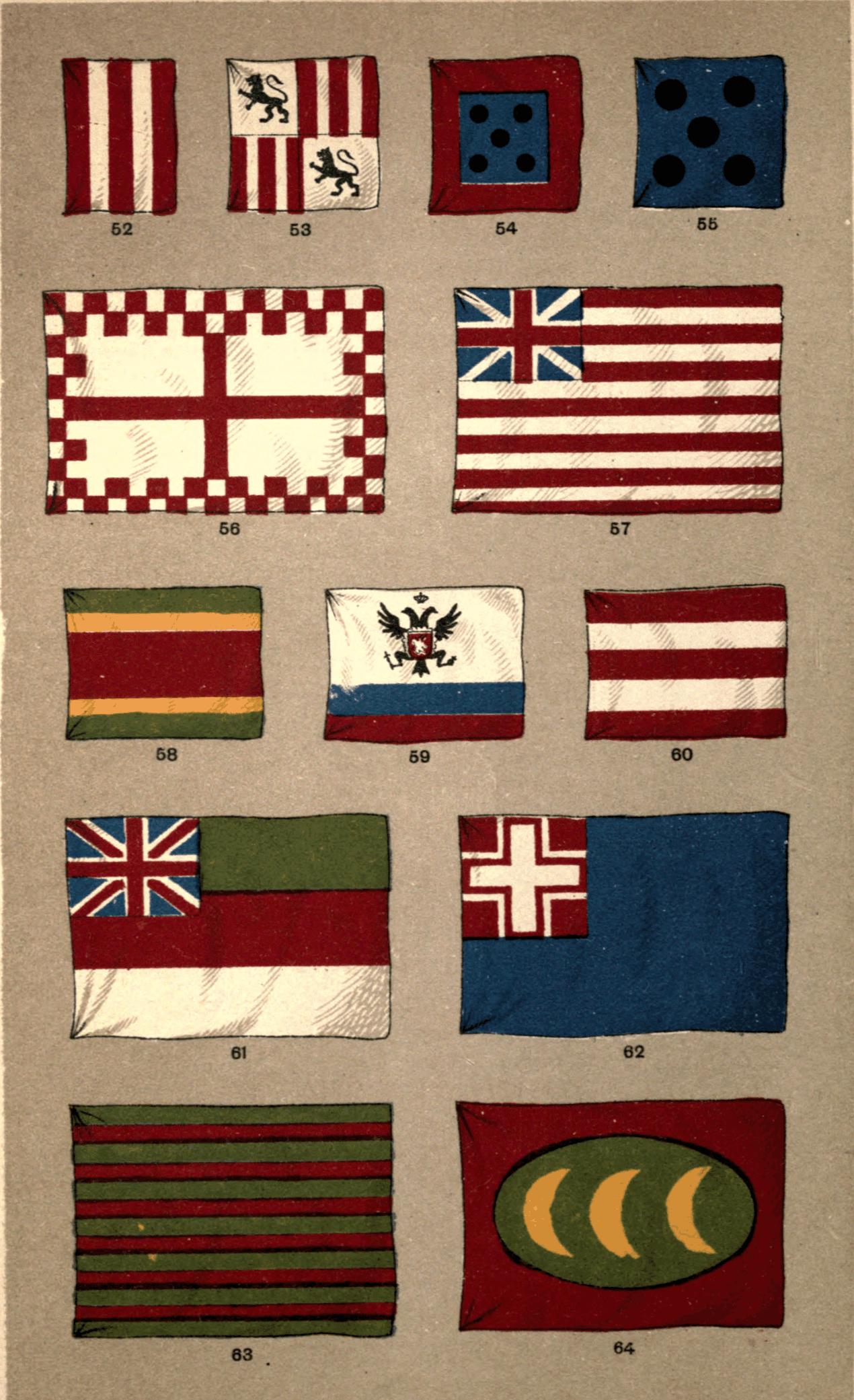 [14] While thus severe in our judgment on misguided foreigners it is only just to point out that England itself is responsible for a combination as horrible as any in the green, red, white, of the special flag that she bestowed on Heligoland, while it was yet a British possession. It may be seen in Fig. 61.