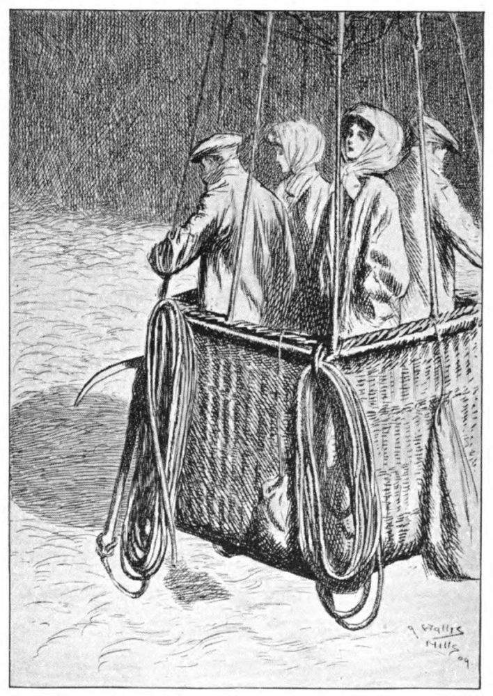 Lady Jane Follitt had last seen the balloon driving through rain-clouds at dusk, somewhere between Peterborough and York. It had not been nearly such good sport as she had anticipated, for the breeze had been light during the early part of the afternoon, and she had been obliged to go slowly in order not to outrun the aëronauts, and when they had begun to travel faster it had grown dark, and she could not see them even with her searchlight! She made up her mind that there was nothing in ballooning after all, and she was wet and tired when she got back to London late at night, and found Claude and her husband waiting for her.{205} The Colonel talked of going down to King’s Follitt the next day.