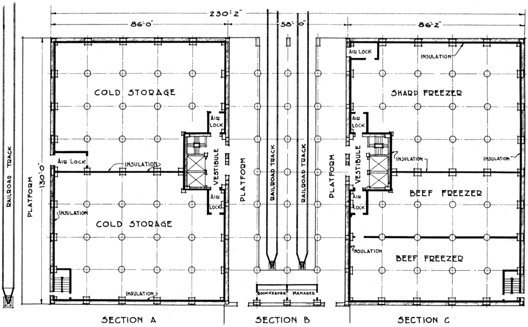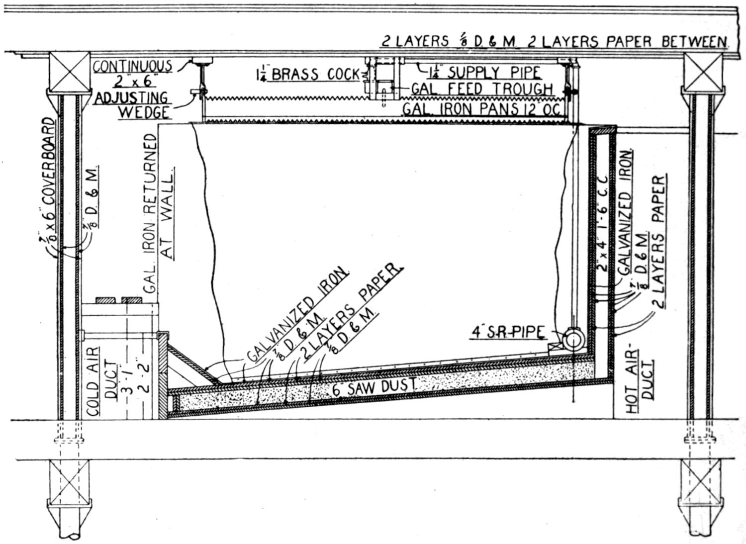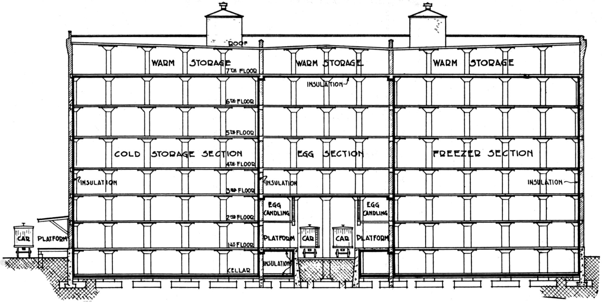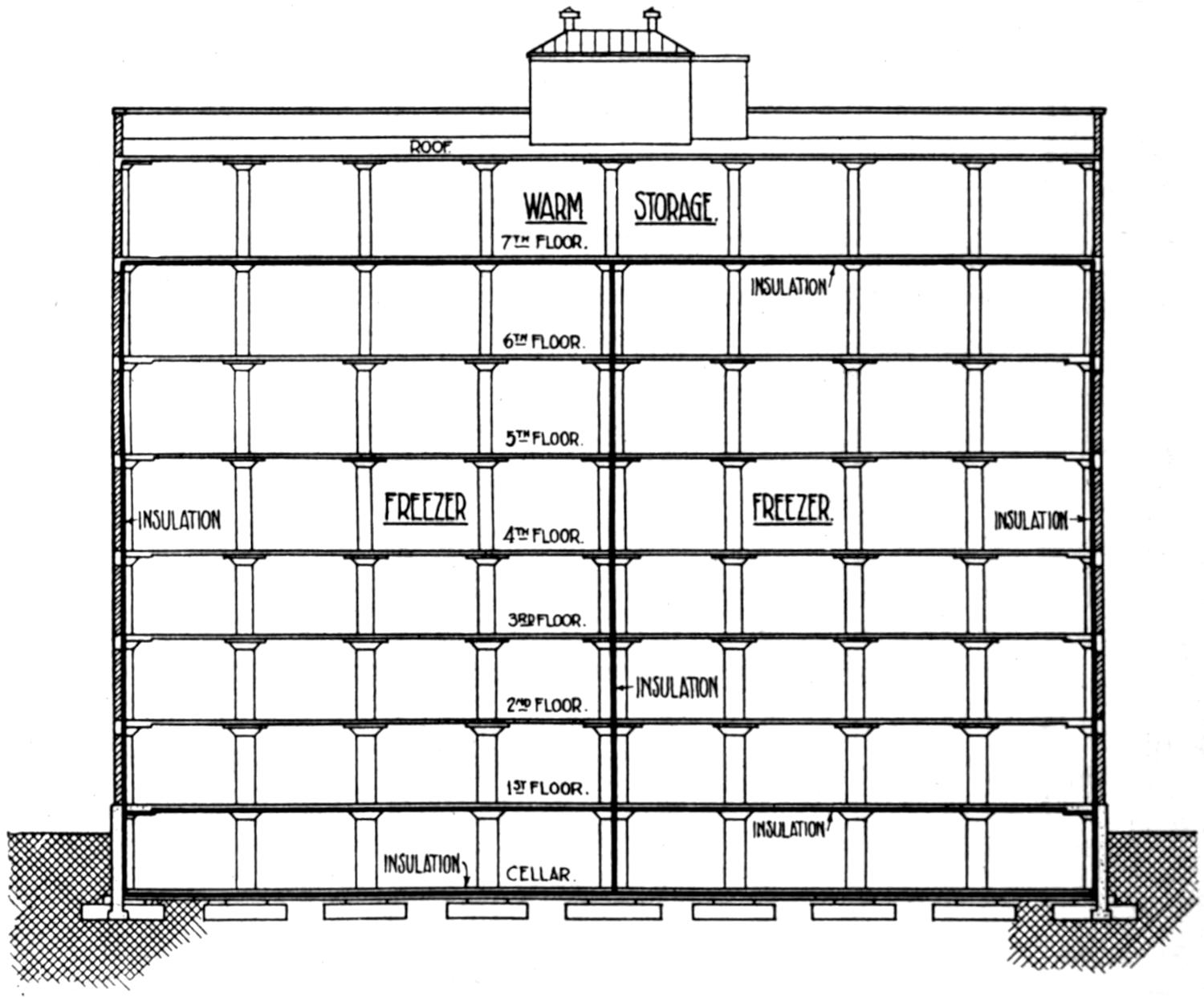 | Warehouse Design — Floor Area — Fire Proof Buildings — Floor Construction — Coolers — Fan and Ventilation — Spray System — Galvanized Sheet Iron Pipes — Coil Rooms — Quantity of Pipe — Method of Erecting — Life of Pipe — Cellar Ceiling Suspension — Ratio of Piping — Defrosting — Gardner Curtain System — Direct Expansion Piping — Chill-Room Bunkers — Low Temperature Brine System — Freezer and Storage Buildings. | |