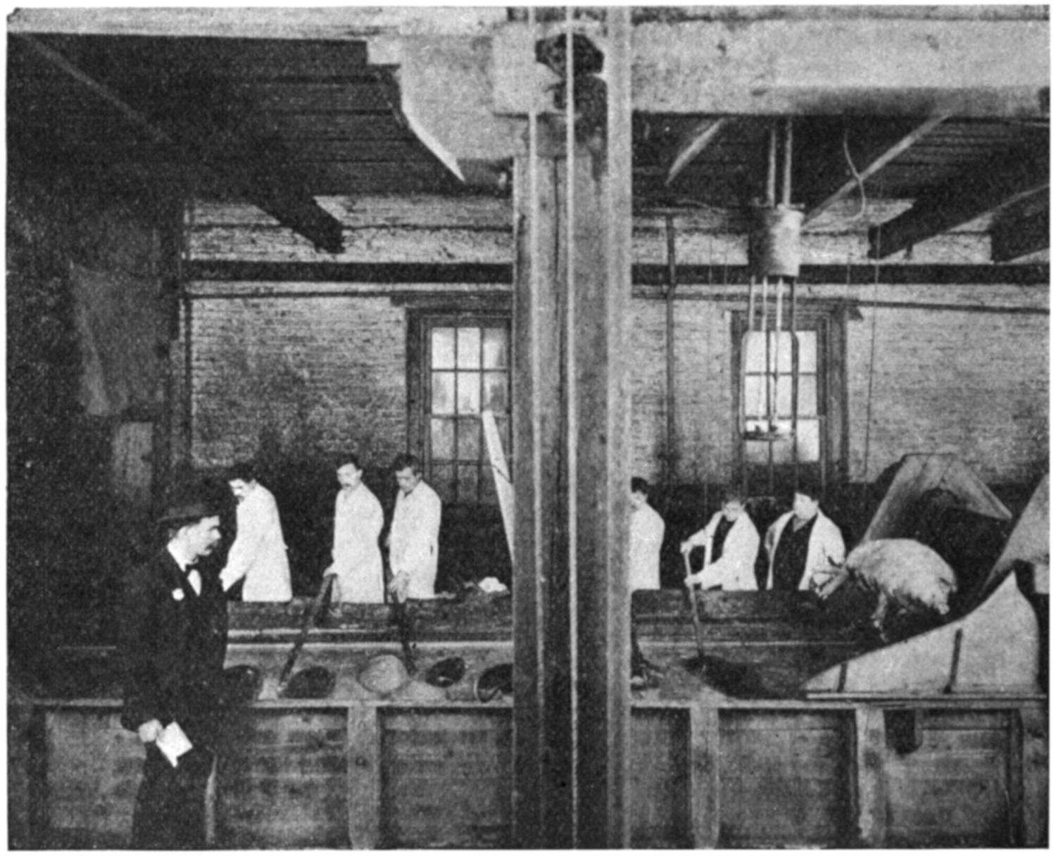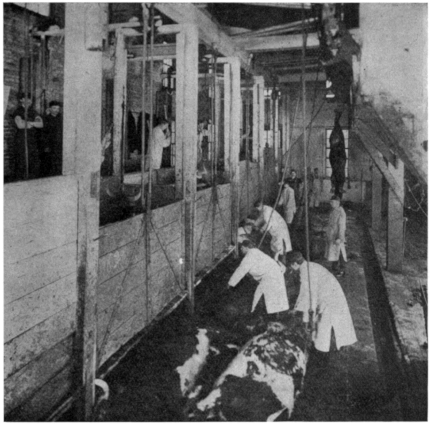| Receiving Live Stock — Watering — Driving Cattle — Knocking Cattle — Sticking — Heading — Pritch Sticks — Foot Skinning — Ripping and Leg Breaking — Flooring Cattle — Breast Sawing — Fell Cutting — Rumping — Beef Spreaders — Fell Beating — Gutting — Backing — Tail Sawing — Splitting — Splitting Cleavers — Clearing Out and Hide Dropping — Neck Splitting — Bruise Trimming — Skirt Trimming — Washing Cattle — Fountain Brushes — Dressing Cattle — Conveyors. | |