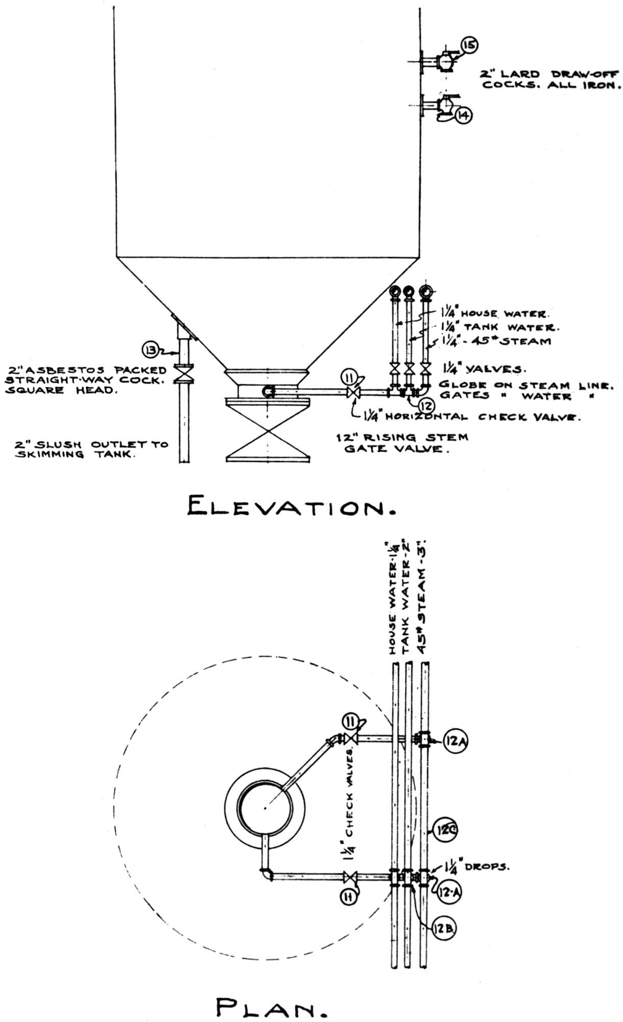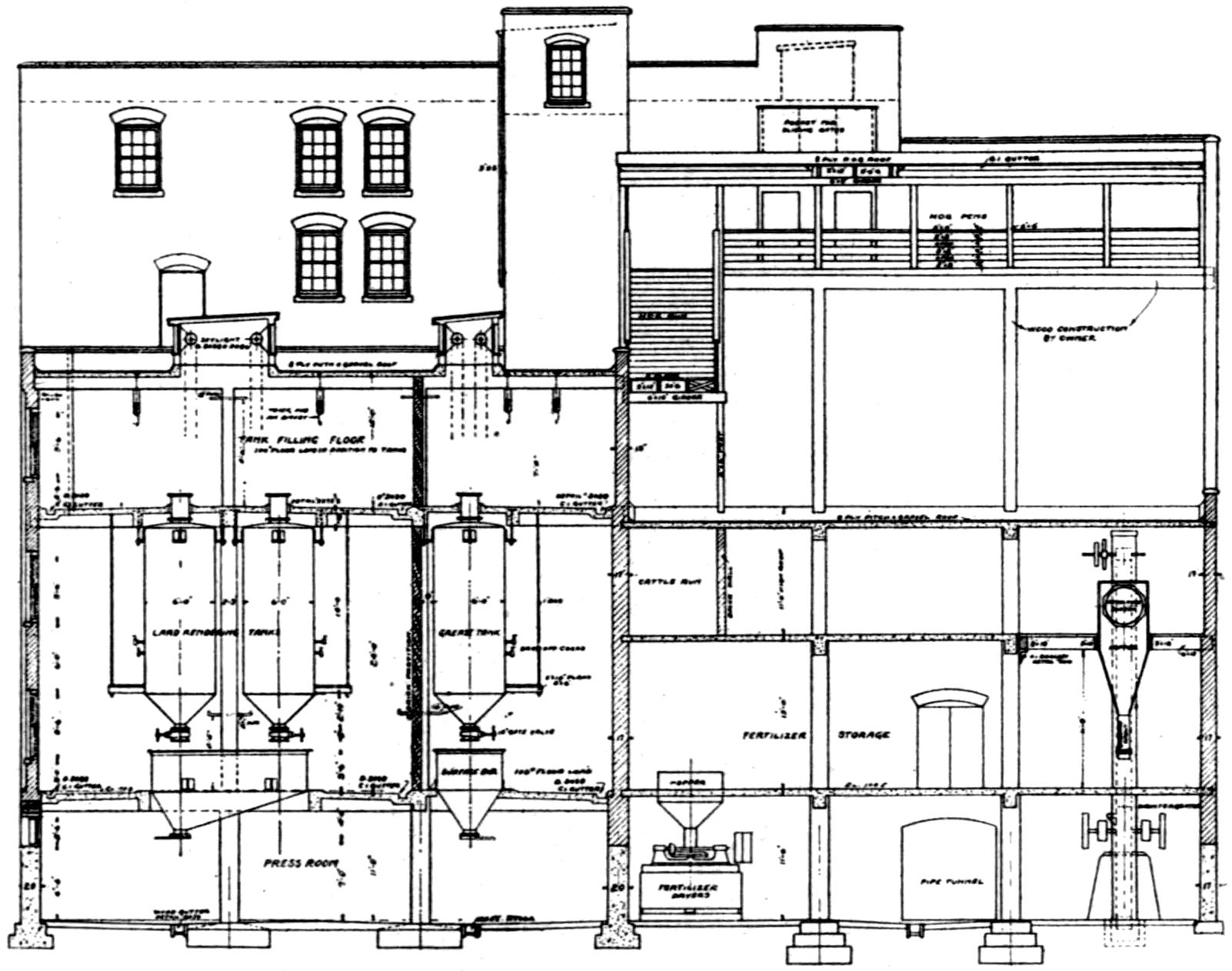 | Tank House Design — Isolation and Ventilation — Separation of Press Room — Digesters — Rendering Tank — Surface Box — Press and Pump — Cooking Killing Stock — Operating Tank Blow Off — Pressing Tankage — Treatment of Lard and Tallow — Titer in Tallow and Lard — Steam for Cooking — Cooking Tests — Operating Odorless — Tests — Catch Basin. | |