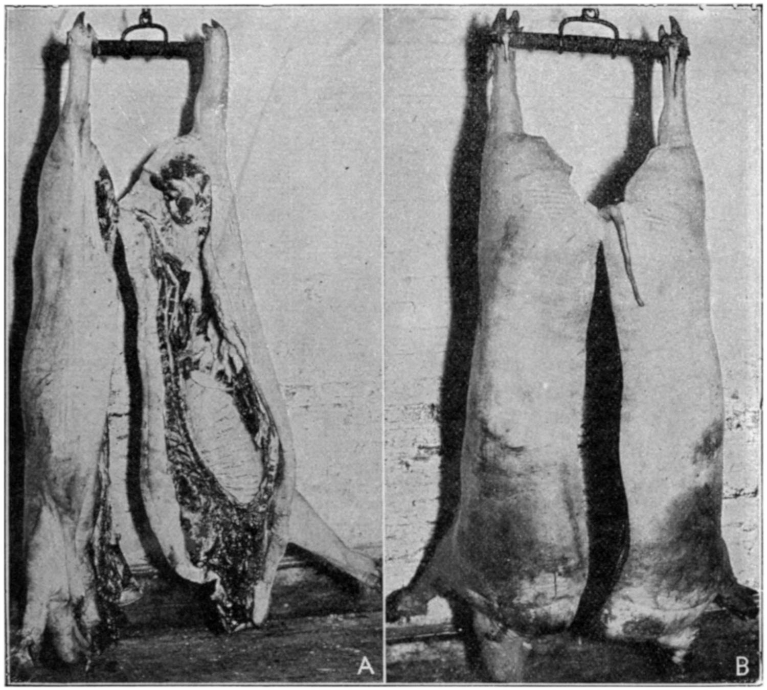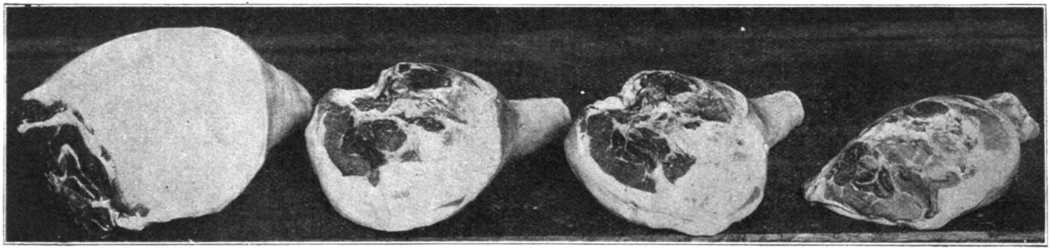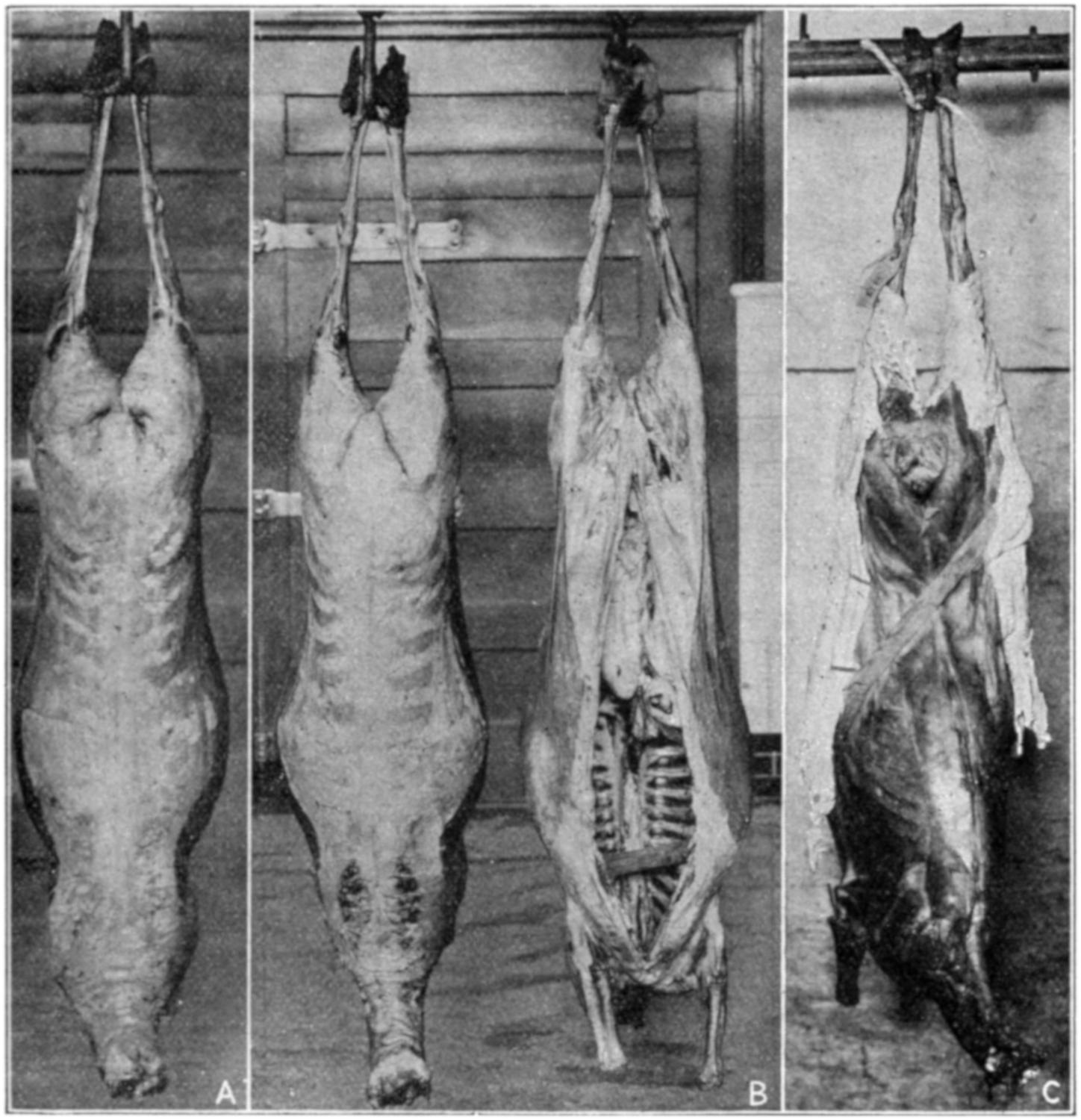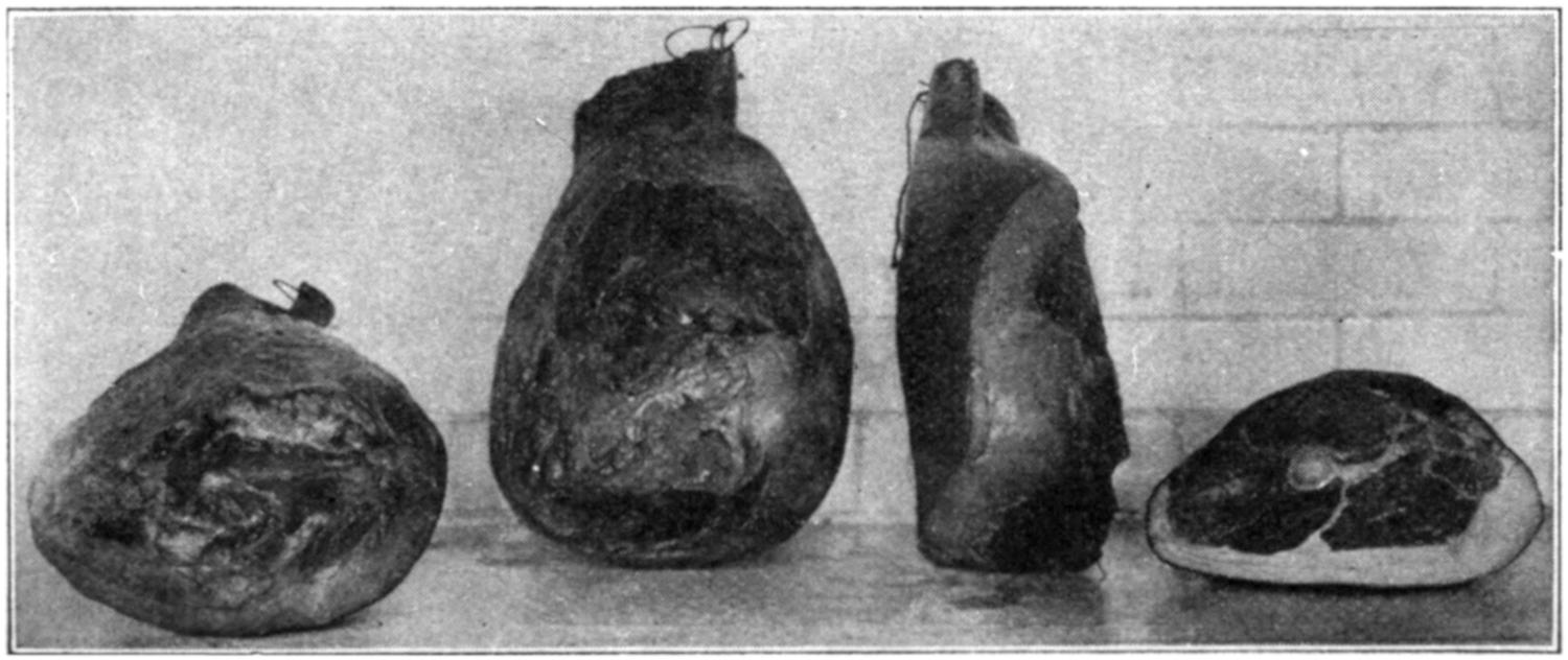 | Beef Miscellaneous — Livers — Sweetbreads — Beef Hearts — Tails — Weasand Meat — Beef Tongues — Washing — Hanging — Trimming — Curing — Freezing — Surplus Rounds — Stripping Beef Hams — Formulas for Curing — Smoking — Tests — Glass Jar Beef — Beef Trimmings — Barrel Beef — Tripe — Cleaning Tripe — Pickling — Cost of Production. | |
