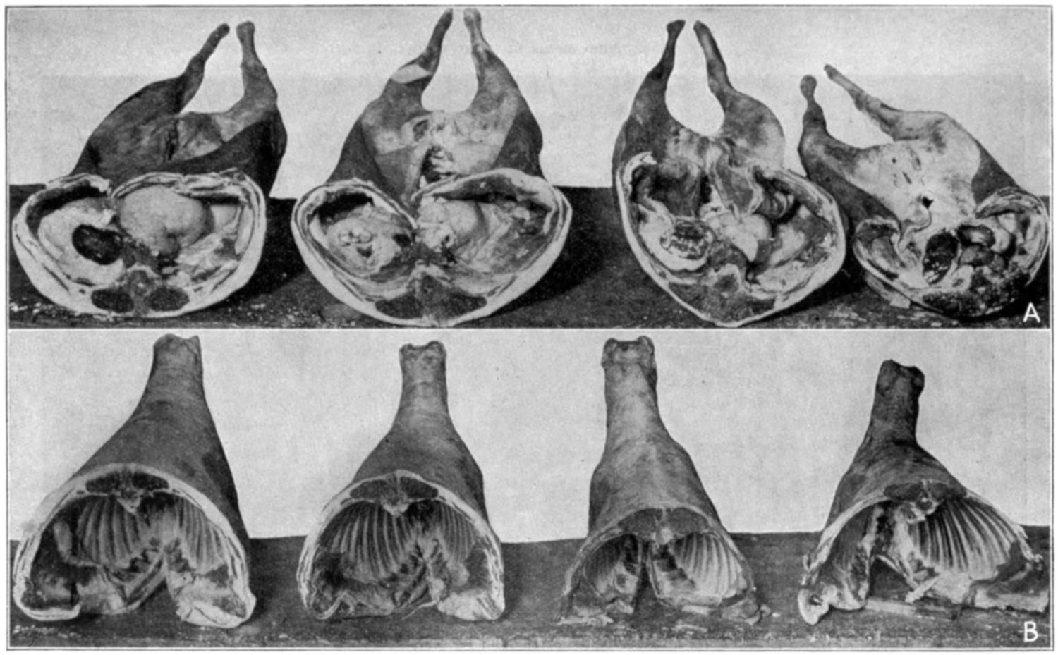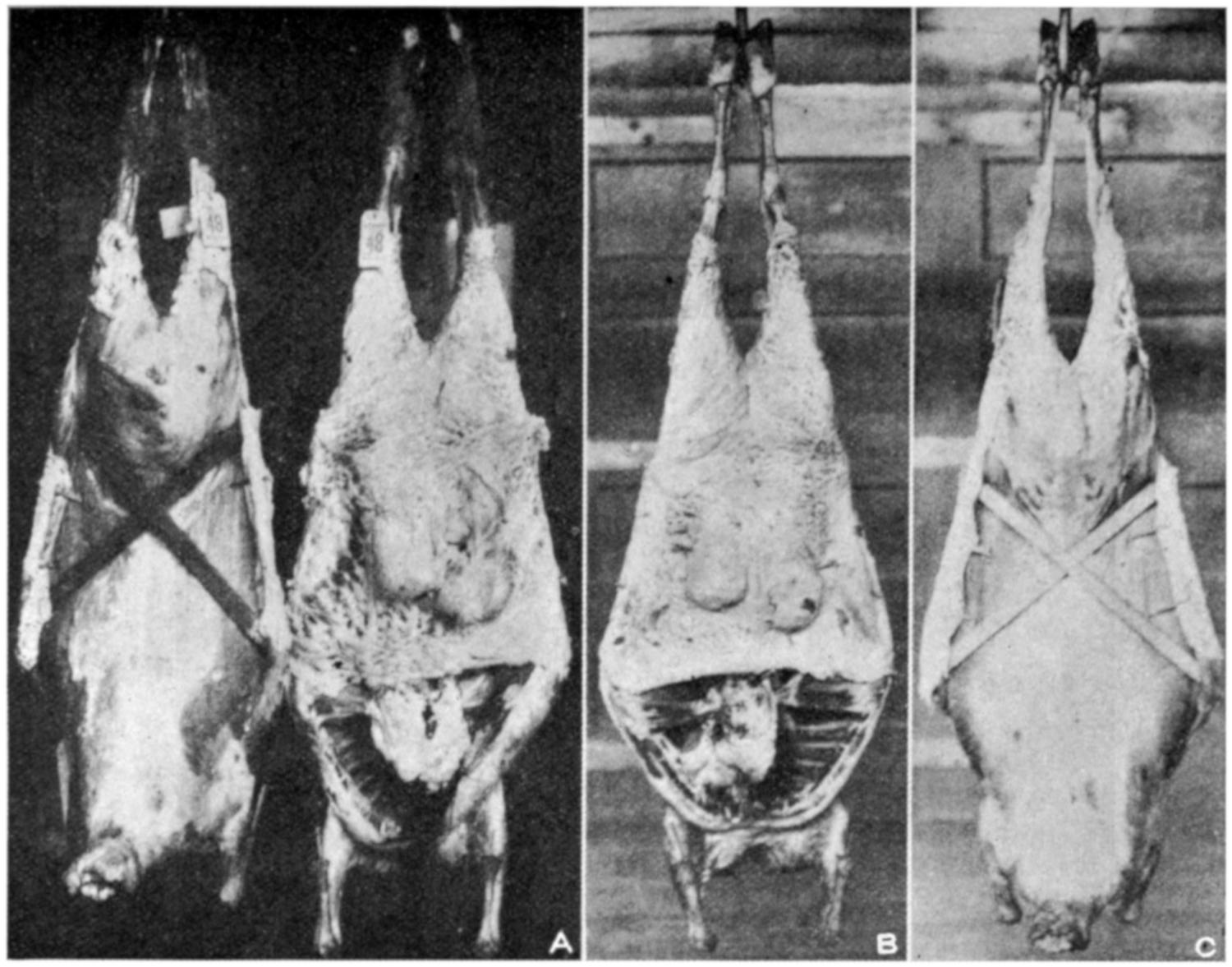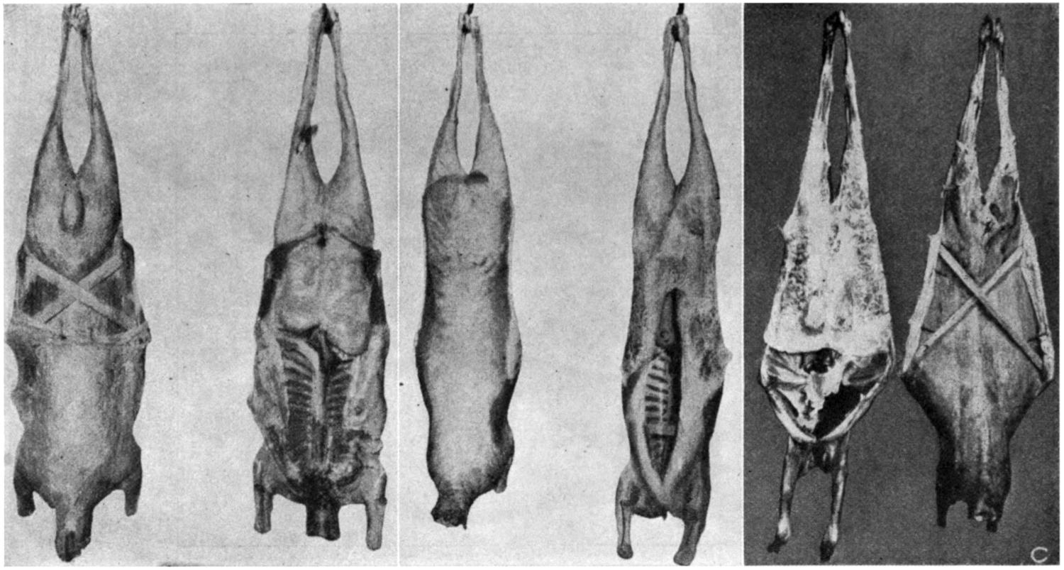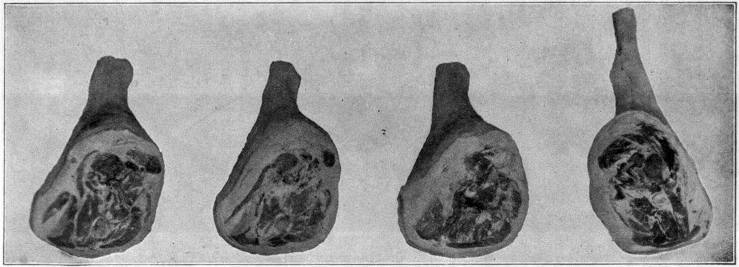 | Beef Miscellaneous — Livers — Sweetbreads — Beef Hearts — Tails — Weasand Meat — Beef Tongues — Washing — Hanging — Trimming — Curing — Freezing — Surplus Rounds — Stripping Beef Hams — Formulas for Curing — Smoking — Tests — Glass Jar Beef — Beef Trimmings — Barrel Beef — Tripe — Cleaning Tripe — Pickling — Cost of Production. | |