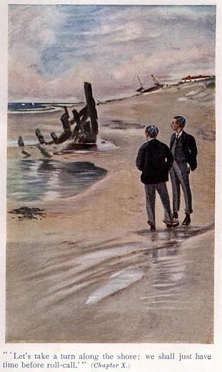 “Sharksfin Lighthouse; don’t you remember seeing it sometimes at night from Saint Win’s? Yes; and those lights twinkling far-off are Saint Win’s. Those must be the school lights; and those long windows you can just see are the chapel windows. They are in chapel now, or the lights wouldn’t be there. Perhaps some of our friends—Power, perhaps, and Eden—are praying for us; they must have missed us since tea-time.”