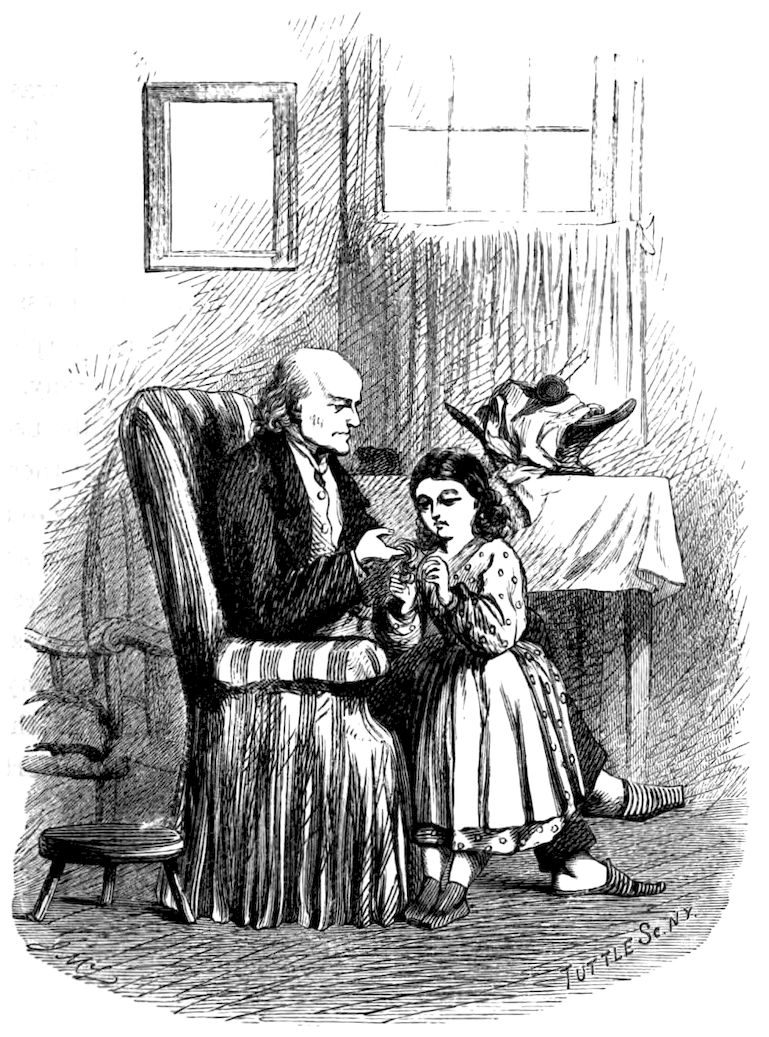 “Shall I have a bald head, grandfather, when I am eighty?” asked little Kitty; “and will it shine, and be smooth, like yours?” “Your head don’t look much like it now, little puss!” said the old man, lifting the silky, yellow curls; “and that puts me in mind that I’ve a story to tell you—a ‘real, true story;’ and all about grandpa, too.