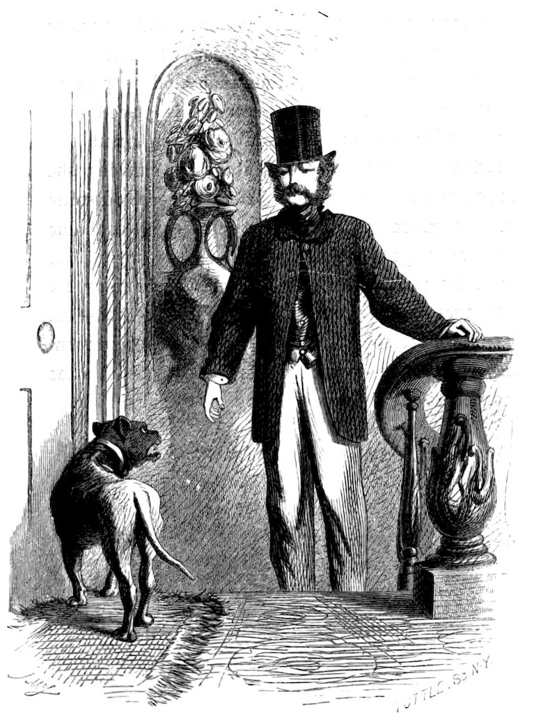 Then the dog, still looking at his master, moved in advance a few paces, would go down one stair, then run back, and tug at his master’s clothes with the greatest violence; then rub his face fondly against his master’s side, and whine and coax, trembling all the while with agitation and excitement.
