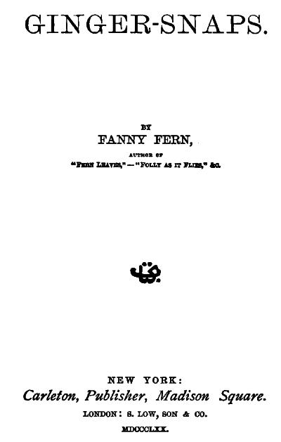 WHEN I was a little girl, I used to play "make ginger-snaps;" and I always tossed in all the ginger in the spice-box, be it more or less; so if you find these rather biting, attribute it to the force of early habits. Beside, they are not intended for a "square meal;" only to nibble at, in the steamboat, or railroad-car, or under the trees in the country; or when your dear, but tardy John, is keeping you waiting, with your gloves buttoned, and your bonnet-strings tied; or, best of all, when you are sitting in your rocking-chair, nursing that dear little baby. I do not think the milk of human kindness is wanting in these Ginger-Snaps, and I trust they are—kneaded.