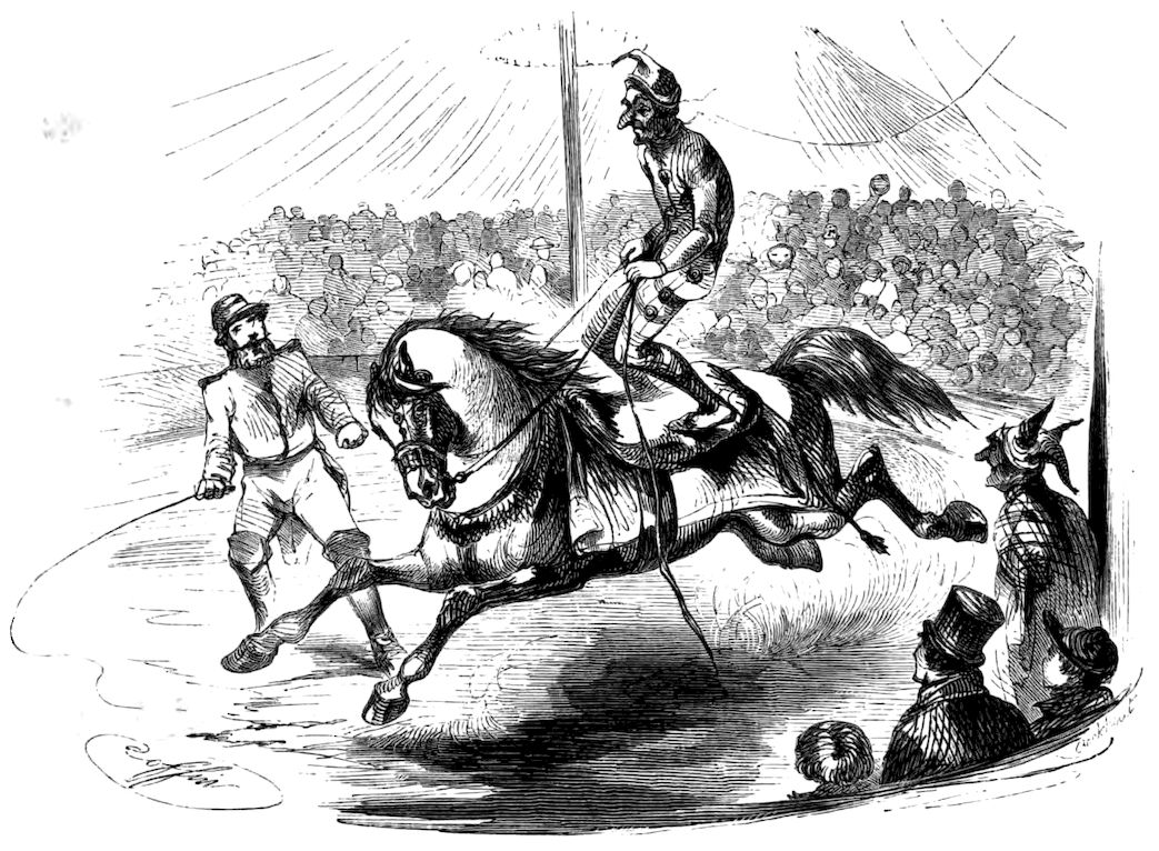 A little girl, about five years old, had been sent, by her mother, to the butcher’s, for a beefsteak, with an open basket. She had done her errand, and was tripping home with the meat, singing as she went, when a great bouncing Newfoundland dog came toward her, and with a bound, placed his two fore-paws on her shoulder, 281while the poor child reached her little arms as high as they would go, above her curly head, to save the precious beefsteak. There, now, there are two subjects, for any of you who can draw. I only wish I could, and I would have had them in this very book.