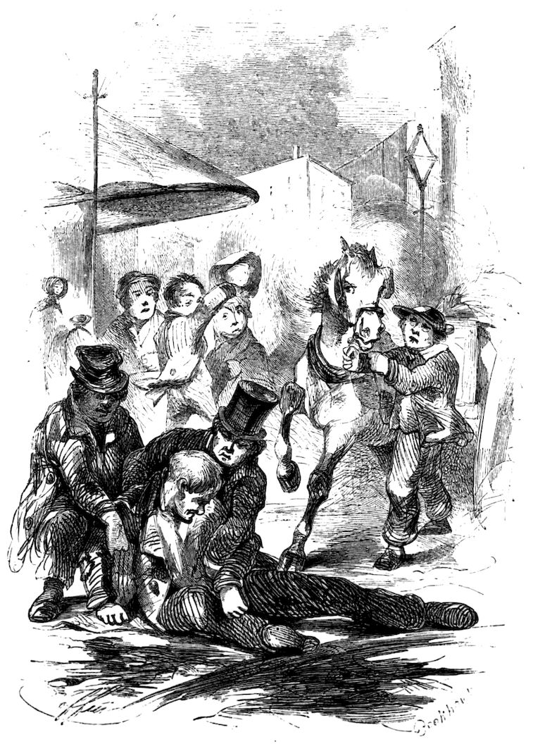 It was very easy work, and when he got through, the bills were sent to his father to pay. As to his lessons, his father had never said any thing about those—it was stupid work studying, well enough for poor men’s sons, whose fathers were not rich, and who would have to earn their own living, but all he was sent there for, was to learn to be a gentleman. His teachers reproved him for neglect of study, and Charley plainly told them it was none of their business to speak to a gentleman in that way; and when his tutor told him that he must not use such language to him, he knocked the tutor down with his gentlemanly fists. To be sure he was drunk when he did it, but the tutor did not seem to think much, even of that gentlemanly excuse, and so Charley was expelled—that is, sent away from college, 253and went back again to his father. Mr. Colt did not keep the store now; he had made so much money, making drunkards, that he could afford to sell out all his rum-barrels to another man, who wanted to get rich too, by breaking women’s hearts, and starving poor innocent children. Mr. Colt now lived in a fine large house, with great high stone steps like a palace, and a great bronze lion on each side of the door. There were beautiful sofas and chairs inside, and mirrors the whole length of the wall, from floor to ceiling. The carpets were as thick and soft as the moss-patches in the woods, and the flowers in them so beautiful that you hesitated to put your foot on them. Then there was silver, and cut-glass, and porcelain, and a whole army of servants, all bought with the poor drunkards’ money; and Mr. Colt walked up and down his rooms, and thought himself a good man, and a gentleman. Charley Colt thought it was all very fine when he came back from college. But what he liked better than any thing else was his father’s wine-cellar. He smoked and drank, and drank and smoked, and lolled around the streets to his heart’s content. One night he was brought home very drunk, by two policemen, who had found him quarreling in the street; his head was badly cut, and his fine clothes were soiled and covered with mud, and 254his hat was so bruised, that you could not have told what shape it was when it was made.