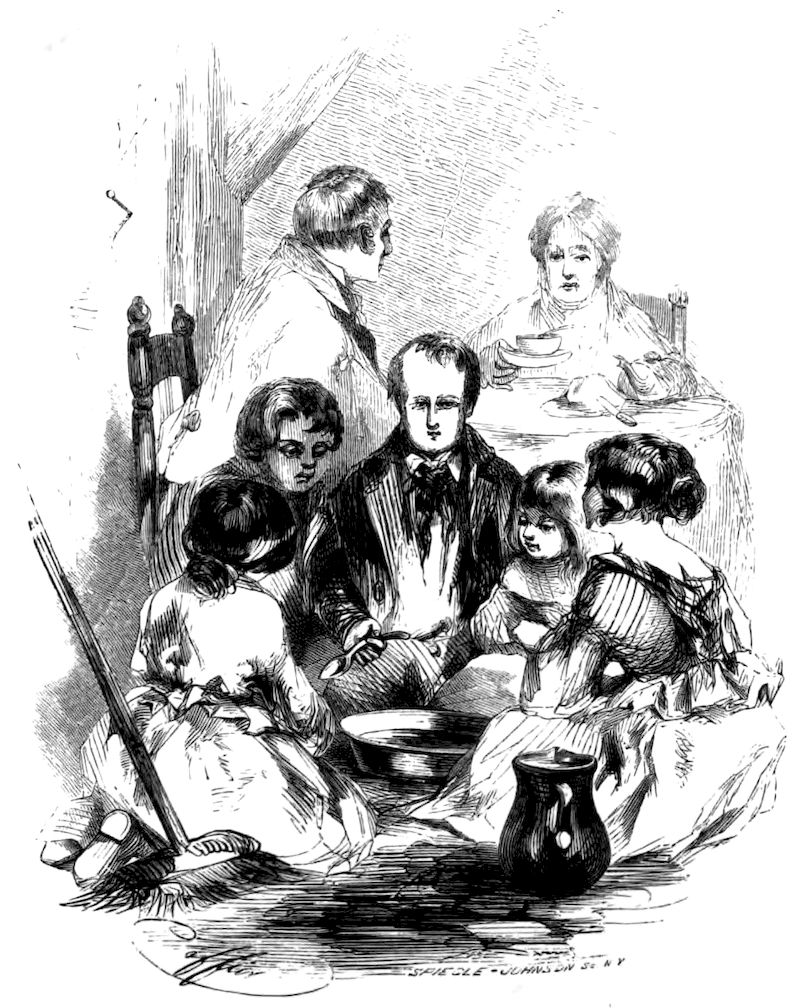 “I loved mother,” said the elder girl, as she saw my eyes moisten; “mother loved me too. I used to go to store for mother; when she died she kissed me, and gave me her parasol;” and the poor child drooped her head over my hand with which she was playing.