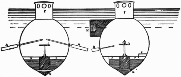 11 But Fulton’s Nautilus could not possibly have made the dives with which she is credited except by the use of the horizontal rudders which she possessed in conjunction with the push of her man-power propellor. Holland had carefully studied the plans and letters of Bushnell and Fulton.