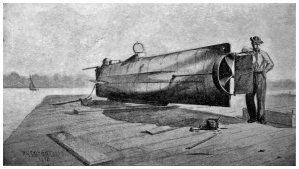 Some well-known pictures of submarines are herein credited for the first time to the man who made them: Captain Francis M. Barber, U. S. N. (retired). This officer published a little pink-backed pamphlet on submarine boats—the first book devoted exclusively to this subject—in 1875.