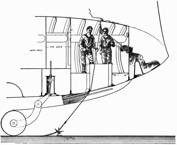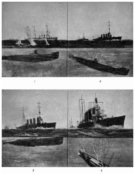 The chapter on “A Trip in a Modern Submarine” is purely imaginative. There is no such boat in our submarine flotilla as the X-4. We ought to have plenty of big, fast, sea-going submarines, with plenty of big, fast sea-planes and battle-cruisers, so that if an invading army ever starts for this country we can meet it and smash it while it is cooped up on transports somewhere in mid-ocean. There, and not in shallow, off-shore waters, cumbered with nets and mines, is the true battlefield of the submarine.