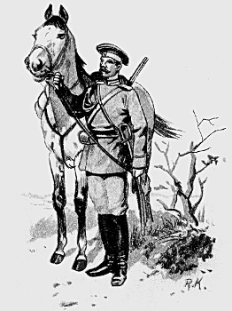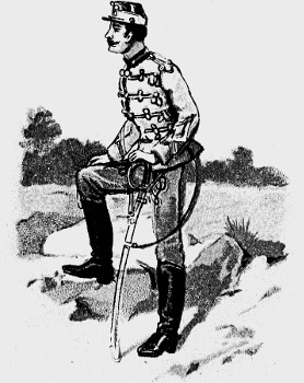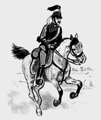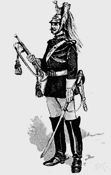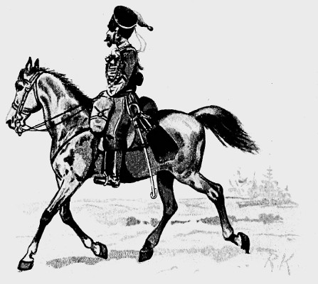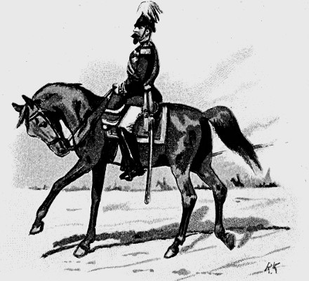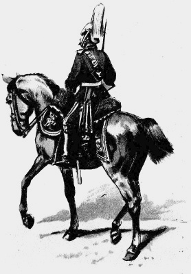 The British Cavalry is the smartest in the world. In the Cavalry of nearly all foreign armies, Germany for instance, and France, the horses are trained to a degree that is unheard of in the English arm; thus their men require but little skill in riding, and may be described as good soldiers on horseback. Ours, on the contrary, are born horsemen, and do not need to have their horses so thoroughly trained. The consequence is that when our men find themselves in a predicament not provided for by the Regulations, their natural qualities stand them in good stead, and by their brilliant riding and dash they turn to good account a situation which might otherwise offer serious difficulties. The British Cavalry is divided into Heavy, Medium, and Light, according to the size and weight of the men. The Household Cavalry, 1st and 2nd Dragoons, are heavy, and are never quartered abroad, the Hussars are light, and all the rest are medium Cavalry.