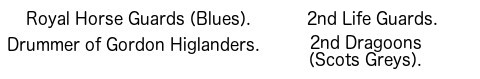 | 1 | Regiment of Royal Horse Guards (Blues) (Household Cavalry). |