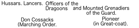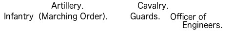 | 13 | Regiments of Hussars (3rd, 4th, 7th, 8th, 10th, 11th, 13th to 15th, and 18th to 21st inclusive). |