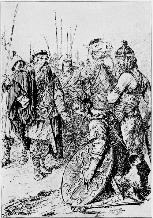 In 808 the aged hero again took the field. He led an expedition against Gottfried, King of Denmark, who in years past had been so busy inciting Saxon revolt. But the Emperor’s purpose was not to obtain satisfaction for old offences, but to stamp out new hostilities. The Obotrites, allies of the Franks, had been suddenly attacked by Gottfried; Danish vessels had harried the German coast; and the Danes had made several landings and pillaged and murdered. Driven back by Carl, the Emperor’s oldest son, Gottfried reached a spot several miles beyond the Schley, where a wall had been constructed across the country, still known as the “Danewerk.” During this expedition the Emperor was thrown from his horse, which caused his lance to fly from his hand, and his sword to drop from his belt. Many regarded this as an unfortunate omen; but Gottfried and Charlemagne did not meet on the field. Gottfried was slain by some of his own people, and Hemming, his brother and successor, hastened to send a peace embassy to Charlemagne. A treaty was negotiated by which Denmark renounced all claim upon the territory for which it had striven, south of the Eider, which was recognized as the northern boundary of the Frankish Empire.
