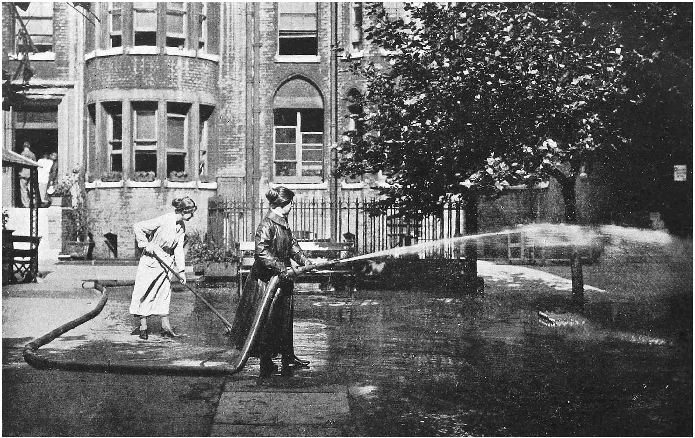 A dormitory which three Roedean girls and an Endell Street orderly were using was very close to the rooms occupied by Dr. Flora Murray and Dr. Garrett Anderson. One summer night, as the babel of voices in the residential quarters died down, the piercing conversation close at hand attracted their attention.