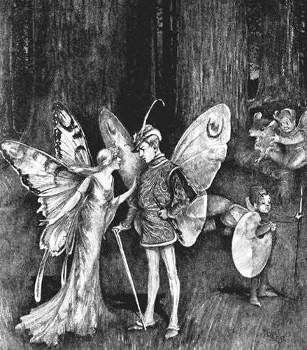 The Good Fairy. At last I am in this wood where I must save the Lady Alice from danger. How dark it seems here after the bright light of my skyey home. Surely I shall be glad to return to the courts of fairyland. Yet it is pleasant to be of service to the young and innocent, to those who are good and true. Some there are on earth who do not love the truth, who do not do the things that are honest and kind, and they must be punished. Kind and gentle deeds must be rewarded with our help.