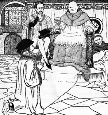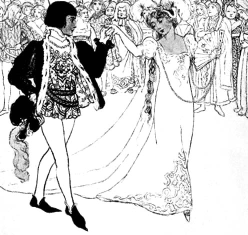 Comus. Dear Lady, stay with me and be my queen. Here may you reign over all my kingdom. See what royal robes are mine, what jewels, what costly tables and shining gold and silver. No[190] sorrow shall you know, but only joy and pleasure.
