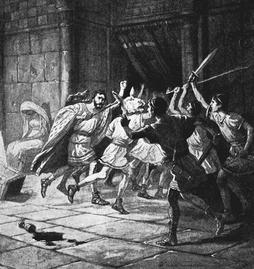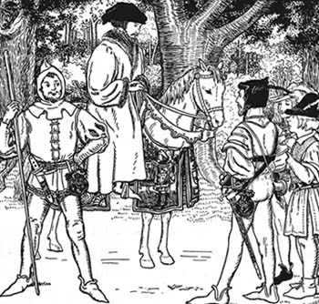 Lady Alice. Is this the cottage you told me of, the place of safety where I could rest. None but good men can offer good things. I will never drink what you offer. What monsters are these? I pray Heaven guard me![189]