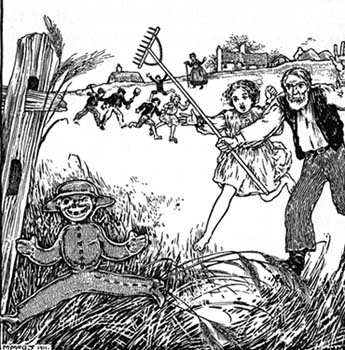 Farmer. Yes, indeed, we'll help you. Here, you gingerbread man, keep out of[175] my wheat field! Come, men; run after him and catch him.