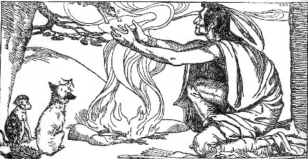 The people of the village had been cold in the winter nights, and they cried, "O brothers, your words are good. We will move our lodges to the foot of the magic mountain. We can light our wigwam fires from its flames, and we shall not fear that[Pg 4] we shall perish in the long, cold nights of winter."