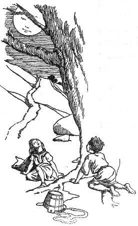 "No," said the other. "We have watched many and many a night to see the great, round moon rise above the trees. That is not the moon. Is it the northern lights?"