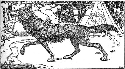 It is no wonder that the hunters were afraid, for the flames flared red over the sky like a wigwam on fire. Thick, blue smoke floated above the flames and hid the shining stars.