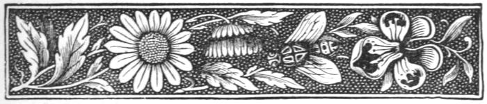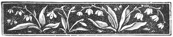 And the poor wife lies in her bed that night too unhappy to sleep, while she pictures her husband doing all sorts of dishonourable things, instead of snoring,[3] as he really is, in his own deserted couch. Her room adjoins that in which the Dye is sleeping with her little girl, and the door between them stands wide open. From where she lies, Ethel can see part of the floor of Katie’s bedroom, from which the moonlight is excluded in consequence of the great black shawl which the nurse continues to pin nightly across the window-pane. Suddenly, as she watches the shaded floor without thinking of it, a streak of moonshine darts right athwart it, as if a corner of the curtain had been raised. Always full of fears for her child, Ethel slips off her own bed, and with noiseless, unslippered feet runs into the next room, only in time to see part of a white dress upon the terrace as some unseen hand hastily drops the shawl again. She crosses the floor, and opening the window, looks out. Nobody is in sight. From end to end of the broad terraces the moonlight lies undisturbed by any shadow, though she fancies her ear can discern the rustling of a garment sweeping the stone foundation. As she turns to the darkened chamber again, she finds the Dye is sitting up, awake and trembling.