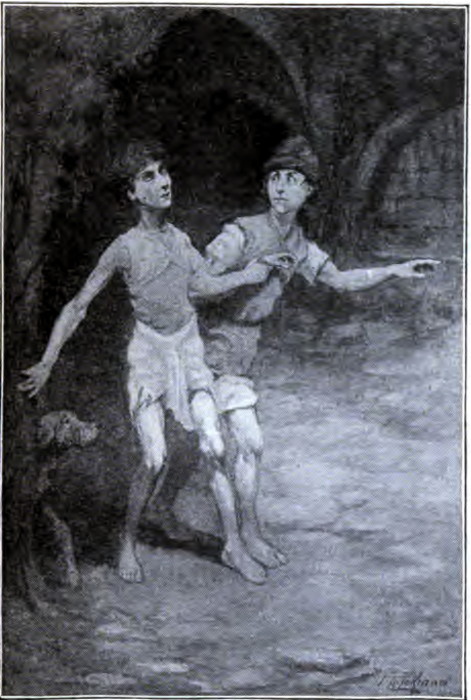 The shriek, faint as it was, reached the ears of a second boy, who was searching carefully from side to side of the gloomy little thoroughfare. “’Tis thou, Tor,” he exclaimed, stooping to stare in at the sewer’s mouth. “Art bad hurt?”