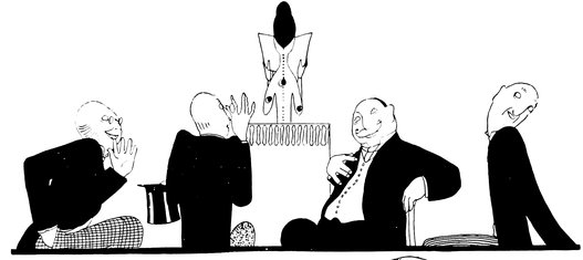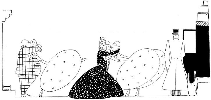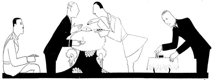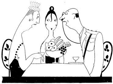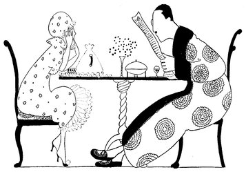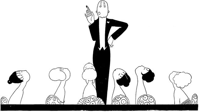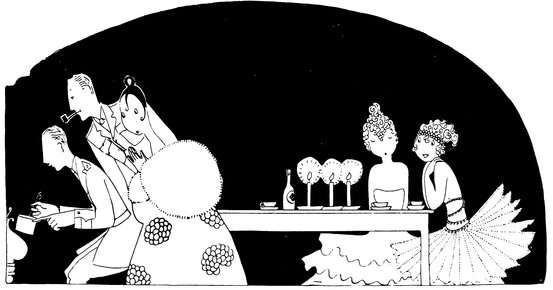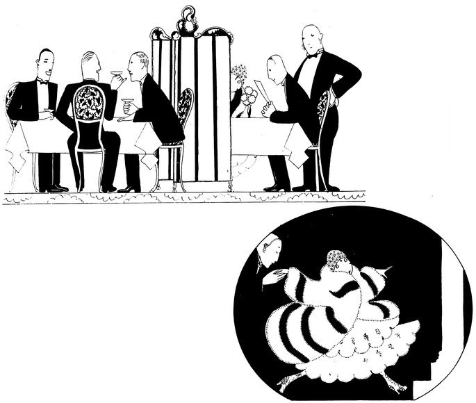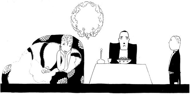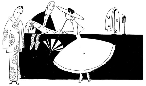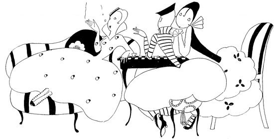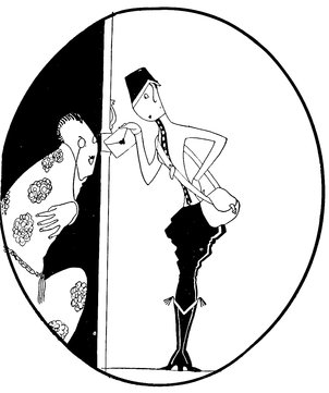 But the above manœuvre is a very catching habit, and each little Eve, anxious not to be the first to arrive, delays the hour of dining. Here we see a vivid picture of a hostess and her male guests sharing the knowledge that the soup is cold and the dinner going to blazes
