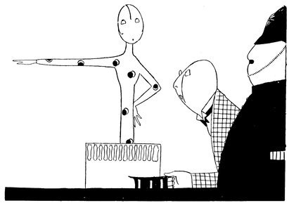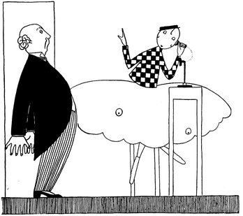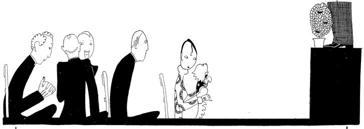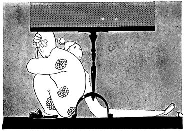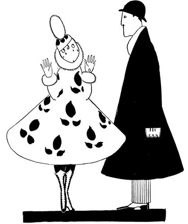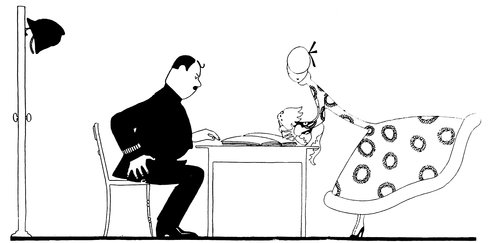 Adam insists on Eve being revaccinated. Eve retorts that it can’t be done while the fashions prevent you having any sleeves in your evening dresses. Adam replies, “Have it done on the leg, then!” But Eve, more in sorrow than in anger, is saying, “How can I show my legs to a doctor man!”