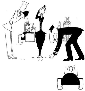 —Whereas, the intrepid pilot at luncheon remarked, “I shouldn’t get too thick with those observer fellers, Eve; we only regard ’em as bally luggage.” (Eve had to put the wings on the wrong side of the chest to show them)
