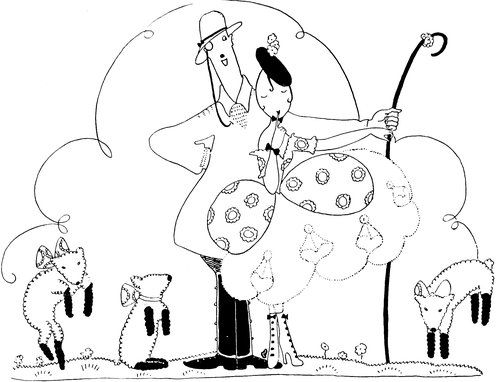 Eve, tired of the tension of war anxiety in town, determines to join the army of farmworkers. She and Adam therefore journey to Mudshire and offer their services to Farmer Giles. He suggests that they should commence by looking after the lambs, which pleased Eve immensely, as it meant a journey to town to procure a ducky little Watteau shepherdess gown. The lambs were hardly less affected than Farmer Giles.