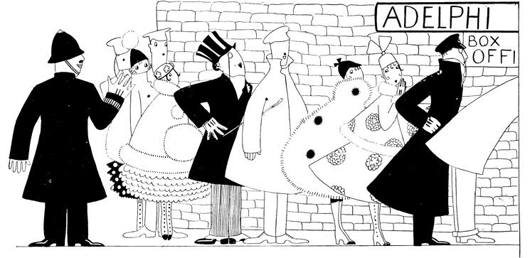 Eve, like Byron, wakes up one morning to find herself famous, as the Adelphi Theatre has made a screaming success over an “Eve” number. Here she is, with an equally excited and palpitating Tou-Tou, dashing to the theatre to book seats
