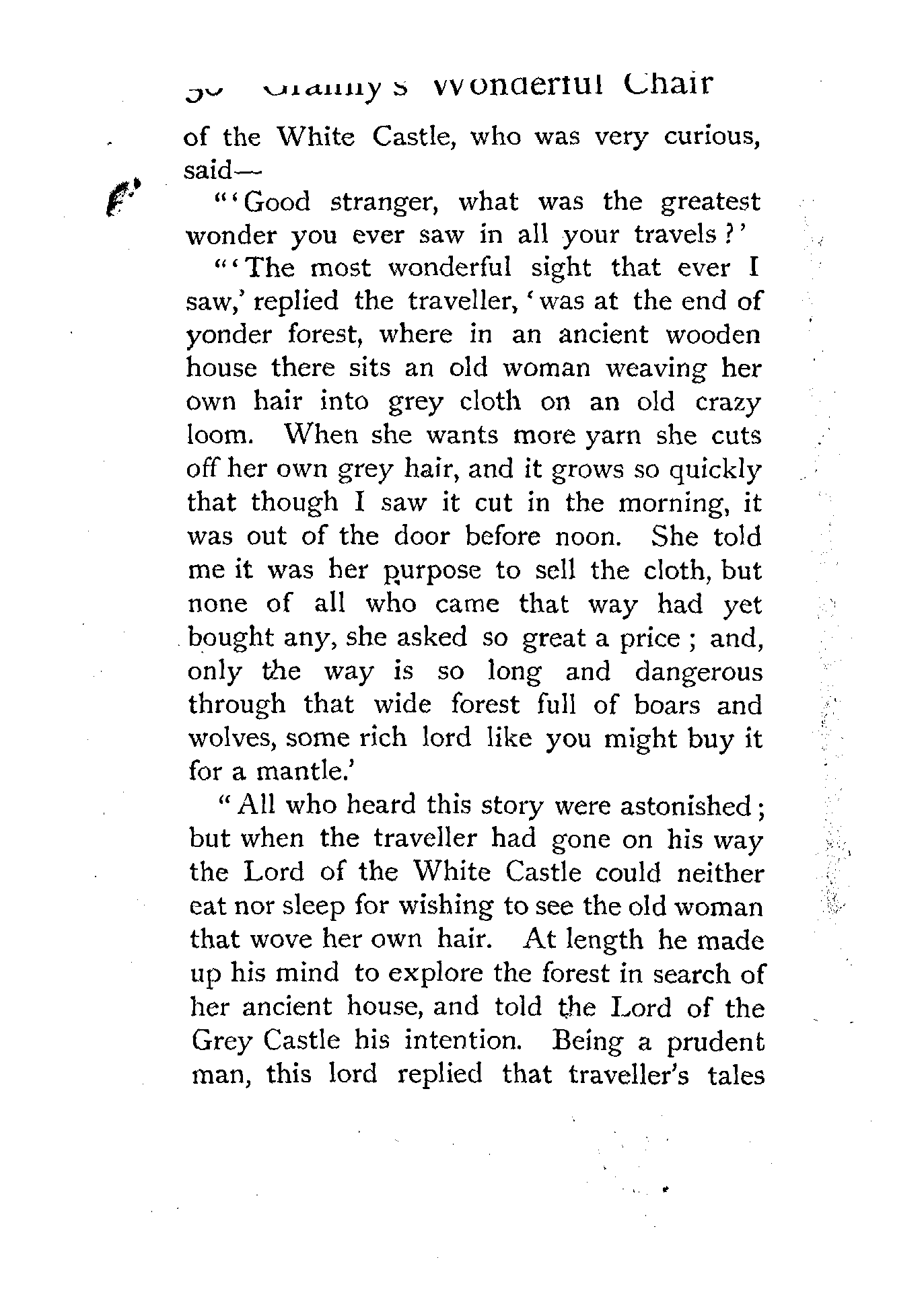"'About that fiddle, my young master: it is certain the strings can never be mended, nor made new, except by threads from the night-spinners, which, if you get, it will be a good pennyworth;' and up the hill he ran like a greyhound.