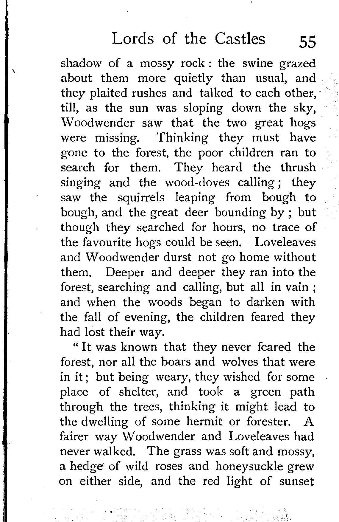 "The birds of that valley did not sing—they were too busy pecking and building. The cats did not lie by the fire—they were all on the watch for mice. The dogs went out after hares on their own account. The cattle and sheep grazed as if they were never to get another mouthful; and the herdsmen were all splitting wood or making baskets.