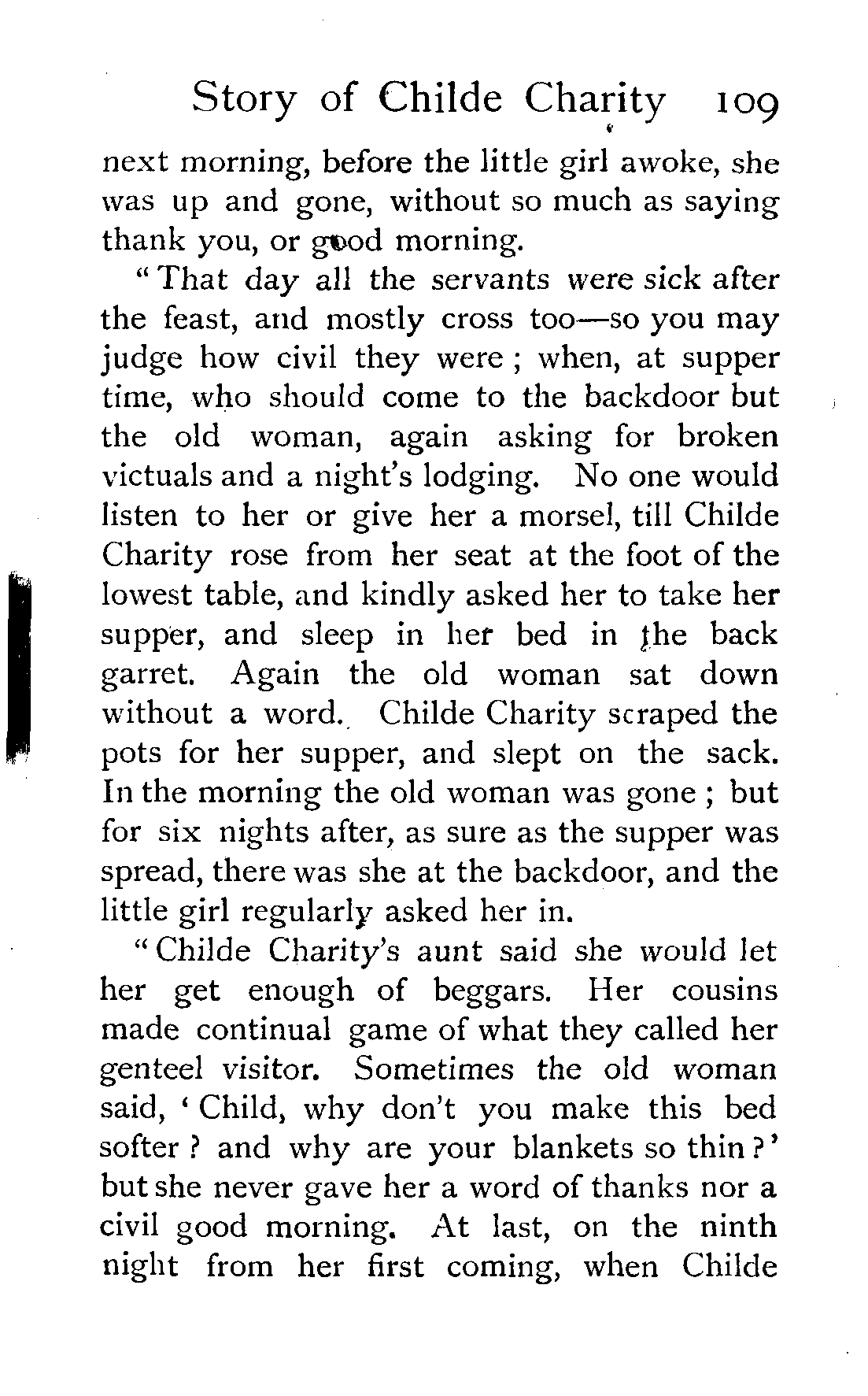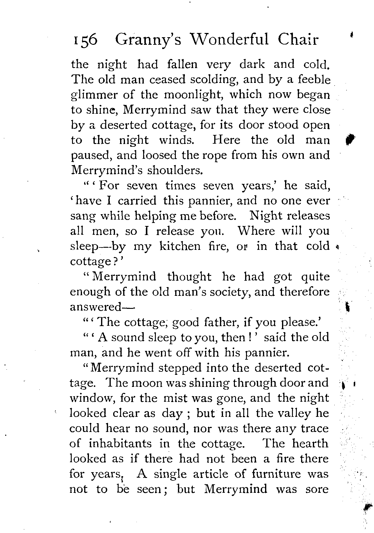 "'For seven times seven years,' he said, 'have I carried this pannier, and no one ever sang while helping me before. Night releases all men, so I release you. Where will you sleep—by my kitchen fire, or in that cold cottage?'