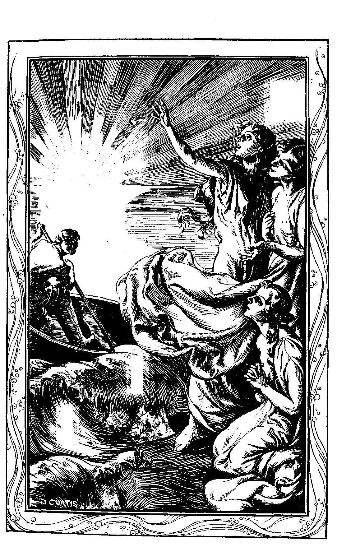 Here the voice ceased, and two that were clad in sea-green silk, with coronets of pearls, rose up, and said—